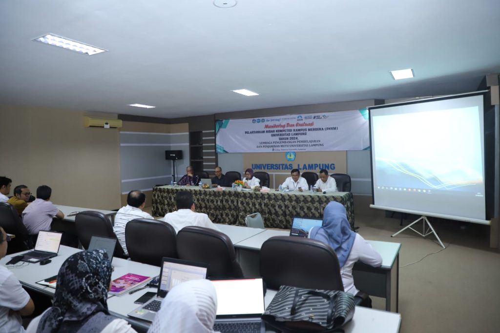 (Unila): Universitas Lampung (Unila) mengadakan monitoring dan evaluasi (monev) pelaksanaan hibah Program Kompetisi Kampus Merdeka (PKKM) pada Rabu, 18 September 2024.