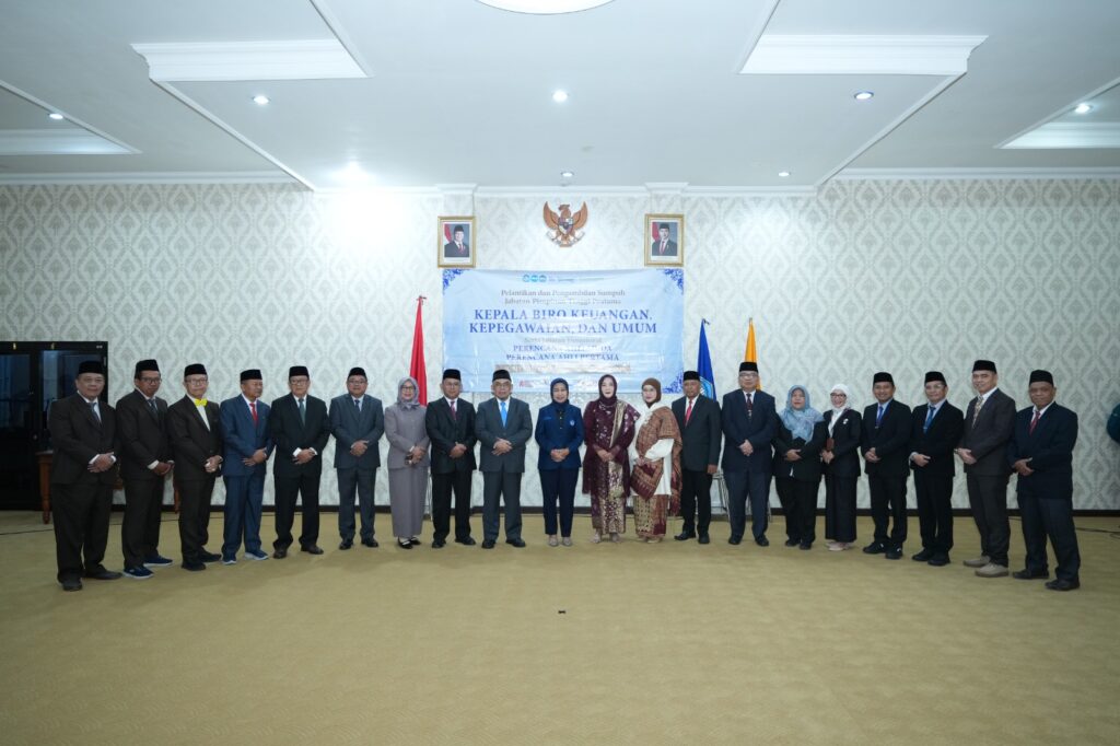 (Unila): Universitas Lampung (Unila) menggelar pelantikan dan pengambilan sumpah jabatan pimpinan tinggi pratama yang meliputi Kepala Biro Keuangan, Kepegawaian, dan Umum, serta jabatan fungsional Perencana Ahli Muda dan Perencana Ahli Pertama. Kegiatan dilaksanakan di ruang pelantikan lantai empat Rektorat, Jumat, 20 Februari 2026.