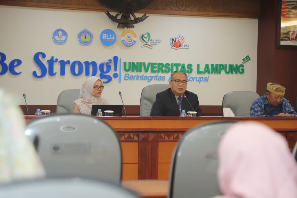 (Unila): Universitas Lampung (Unila) menyelenggarakan pembekalan bagi dosen dan tenaga kependidikan (tendik) calon purnabakti di ruang sidang utama, lantai dua Gedung Rektorat, Selasa, 26 Agustus 2025.