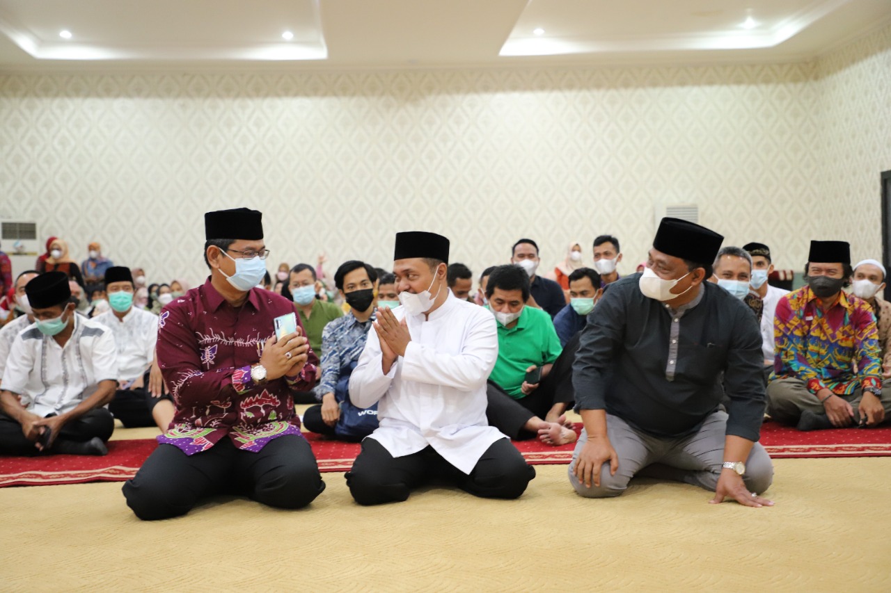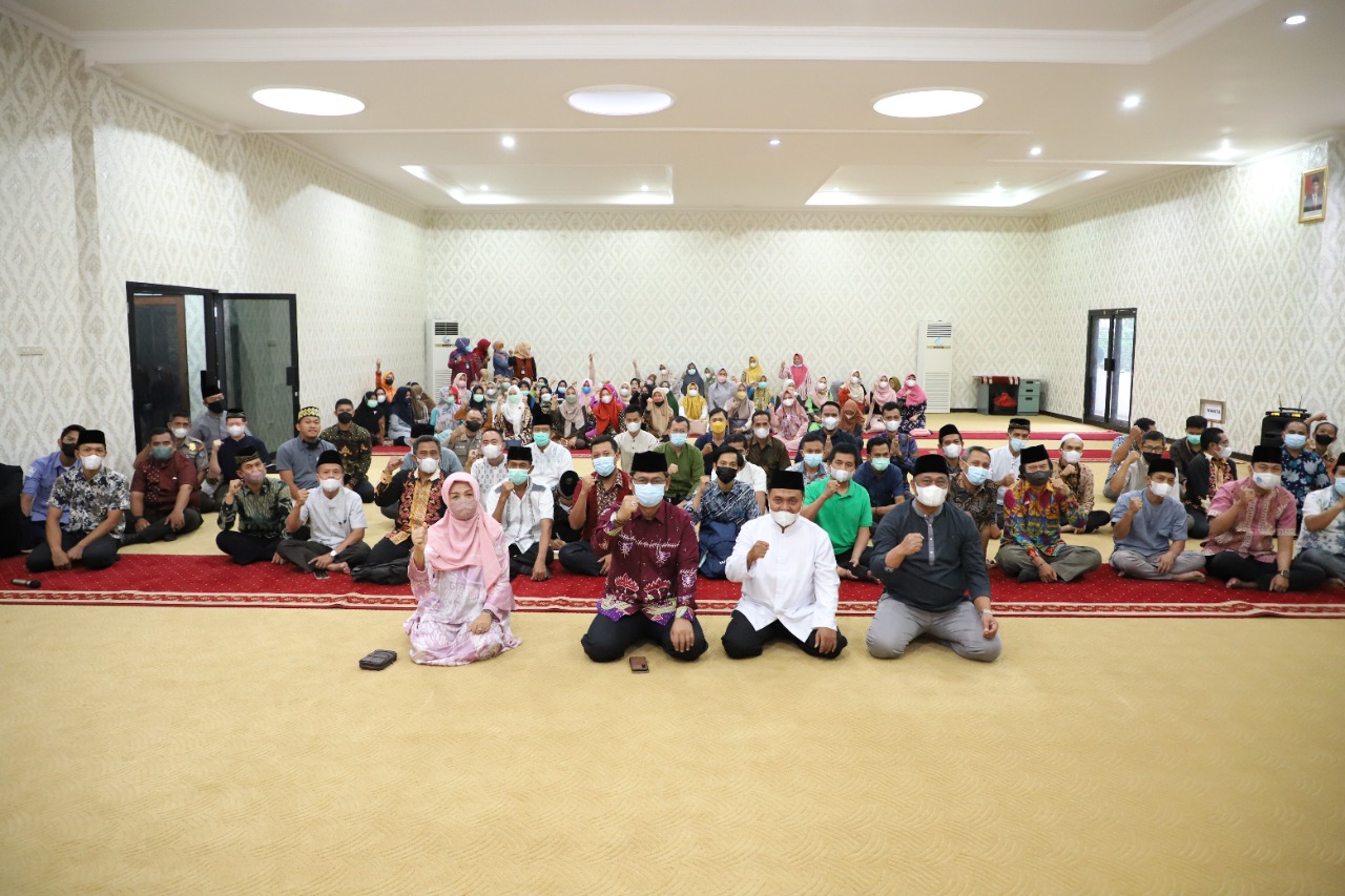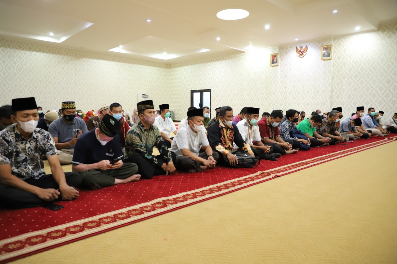 (Unila): Universitas Lampung (Unila) menggelar Pengajian Bulan Ramadan 1443 Hijriah dalam rangka meningkatkan keimanan dan ketakwaan kepada Allah subhanahu wa taala di bulan suci Ramadan, di ruang pelantikan lantai empat Rektorat, Jumat, 8 April 2022.