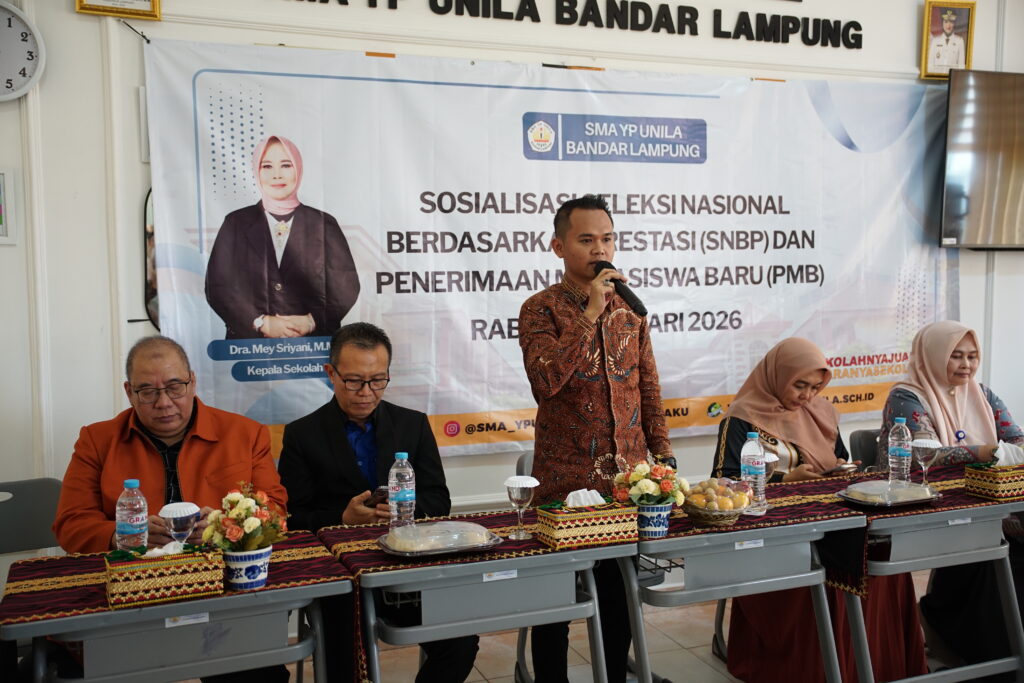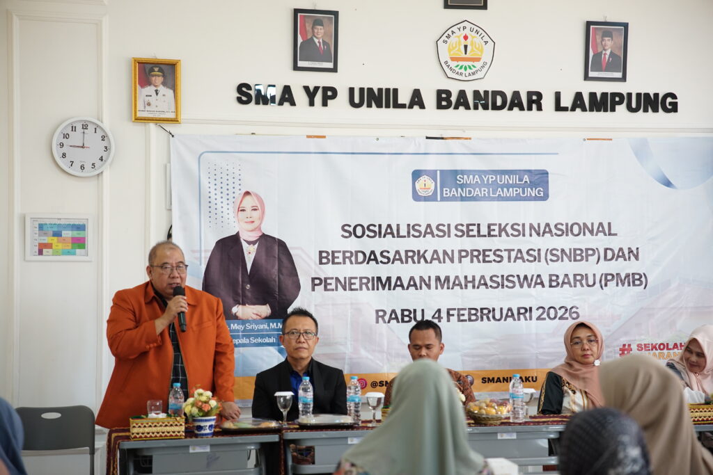(Unila): Universitas Lampung (Unila) melaksanakan sosialisasi penerimaan mahasiswa baru (PMB) Unila tahun 2026, pada Rabu, 4 Februari 2026, di ruang aula lantai dua Gedung SMA YP Unila, Bandar Lampung.