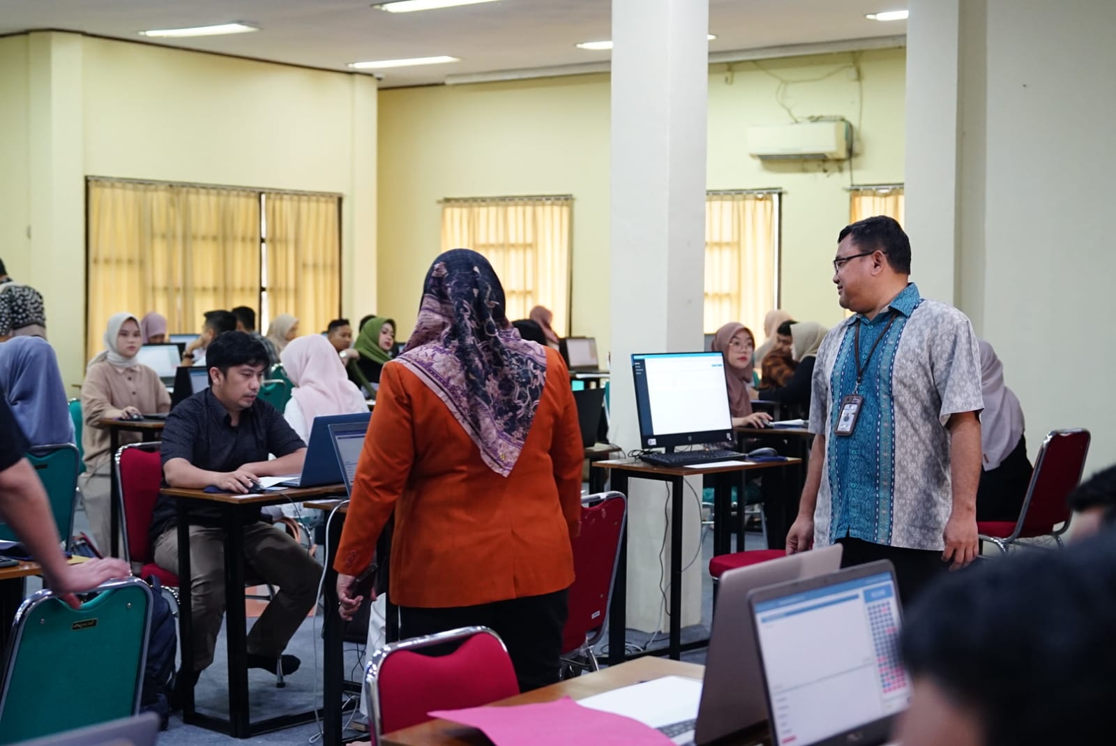 (Unila): Universitas Lampung (Unila) menggelar tes CBT (Computer Based Test) dan tes wawancara seleksi penerimaan mahasiswa baru program pascasarjana program studi doktor (S-3) dan magister (S-2) gelombang satu tahun akademik 2024/2025, di Gedung UPT TIK Unila untuk tes CBT dan di masing-masing program studi untuk tes wawancara pada Sabtu, 11 Mei 2024.