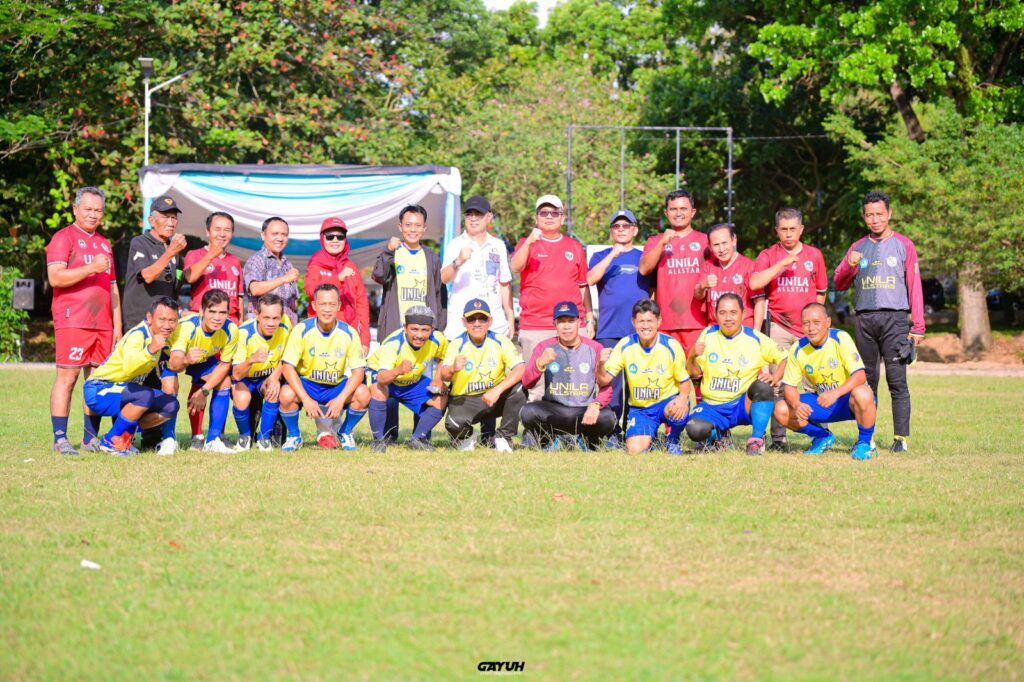 Suasana meriah terasa saat All Stars angkatan 80-an jadi penanda kick-off dan dibuka Wakil Rektor Bidang Keuangan dan Umum, Dr. Habibullah Jimad, S.E., M.Si., yang hadir mewakili Rektor Unila.