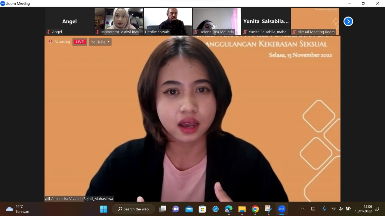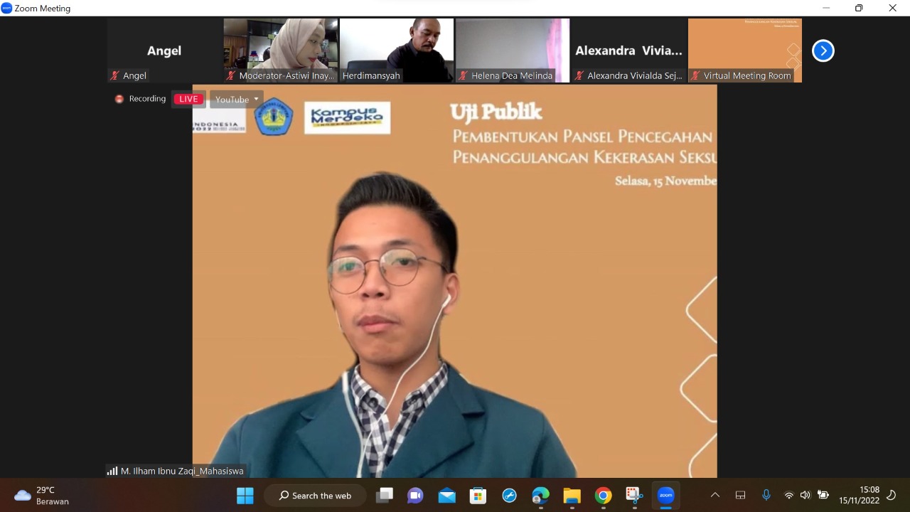 (Unila): Universitas Lampung (Unila) menggelar Uji Publik Calon Pansel Pencegahan dan Penanganan Kekerasan Seksual (PPKS) Unila secara daring, Selasa, 15 November 2022.