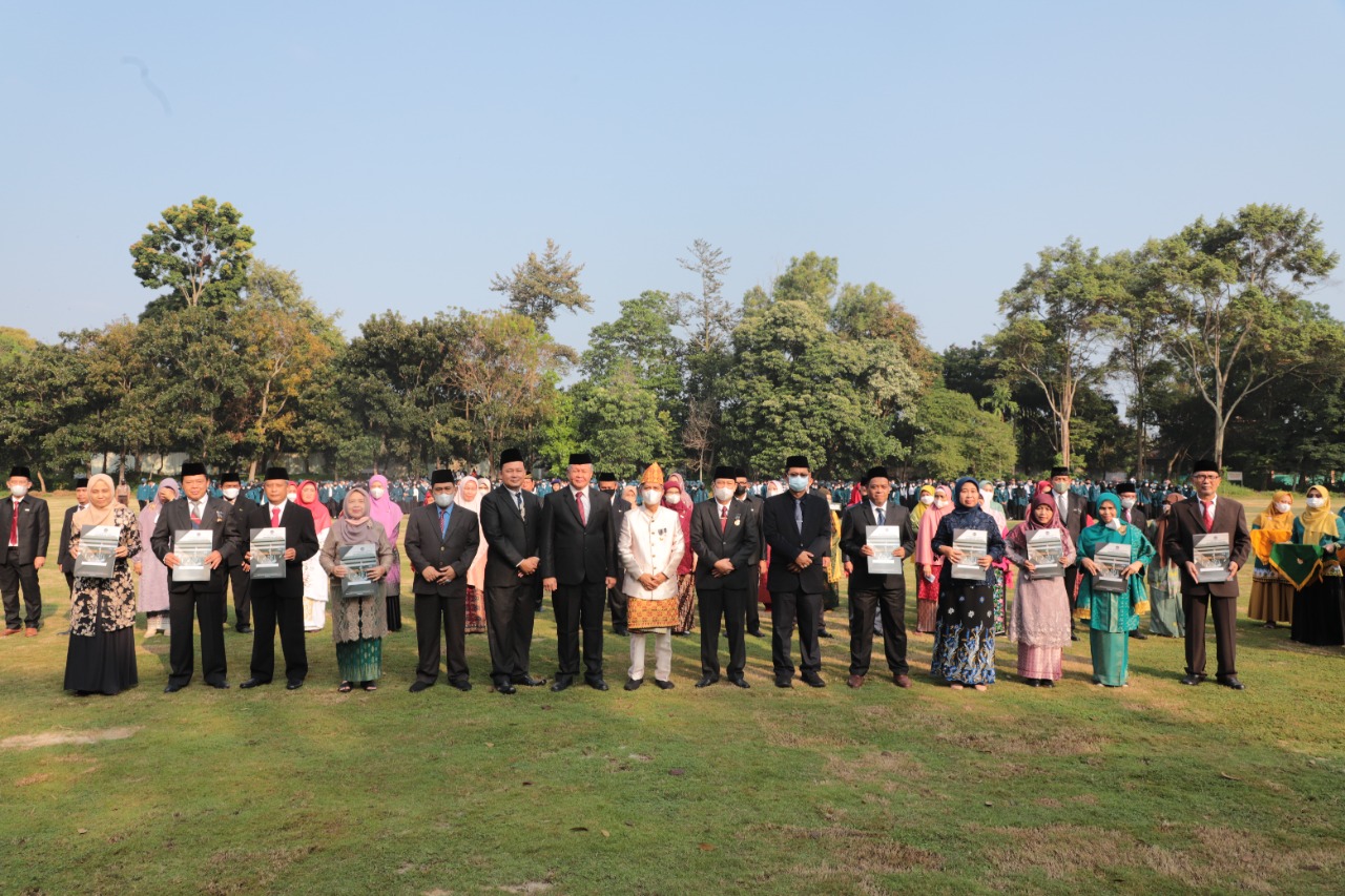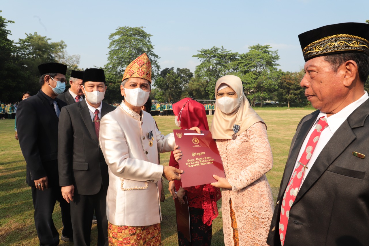 Dalam upacara yang berlangsung khidmat tersebut, Rektor Unila Prof. Dr. Karomani, M.Si., membacakan sambutan Menteri Pendidikan, Kebudayaan, Riset, dan Teknologi (Mendikbudristek) Nadiem Anwar Makarim.