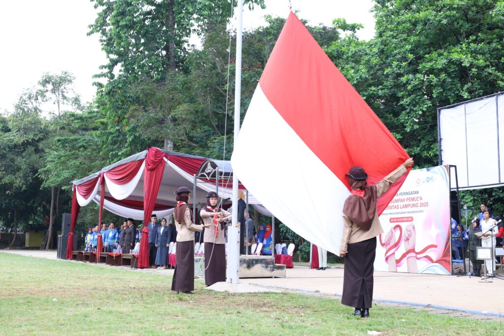 (Unila): Universitas Lampung (Unila) menyelenggarakan upacara peringatan Hari Sumpah Pemuda ke-97 Tahun 2025 di Lapangan Sepak Bola Unila, Selasa, 28 Oktober 2025. Kegiatan diikuti pimpinan universitas, dosen, tenaga kependidikan, serta ratusan mahasiswa dari berbagai fakultas.