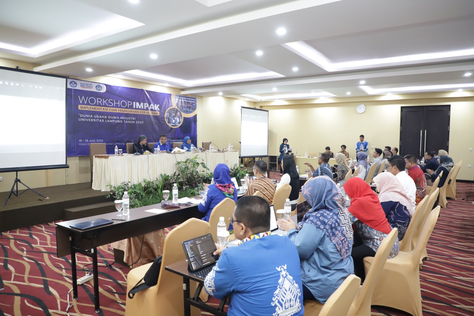 (Unila): Universitas Lampung (Unila) menggelar Workshop Implementasi dan Pemadanan Kerja sama (IMPAK) Dunia Usaha dan Dunia Industri (DUDI) Universitas Lampung tahun 2023 di Bukit Randu, Bandarlampung, Kamis, 15 Juni 2023.