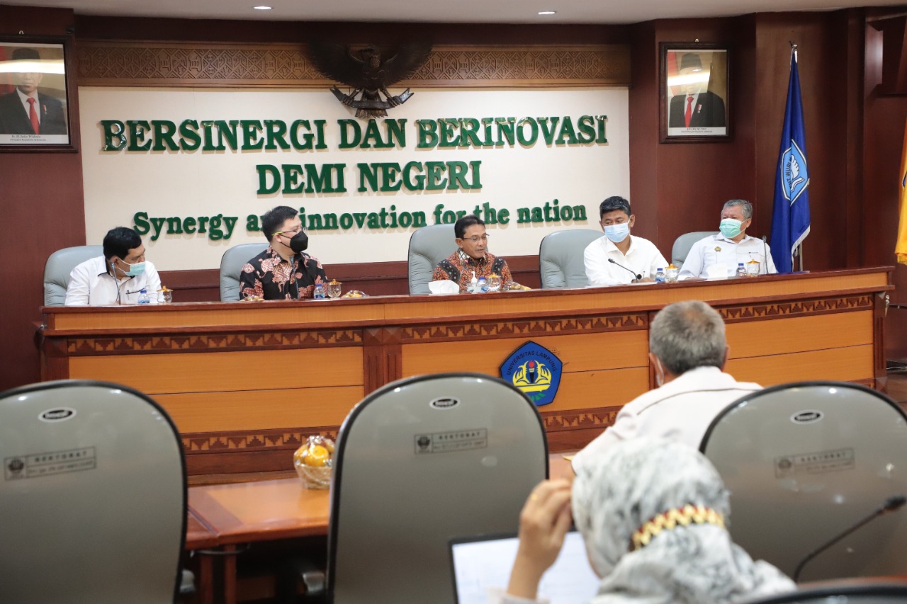 Di kesempatan yang sama, Plt. Rektor Unila Dr. Mohammad Sofwan Effendi, M.Ed., dalam sambutannya menyampaikan, salah satu cara yang dapat dilakukan untuk mendesain program Merdeka Belajar Kampus Merdeka (MBKM) yakni dosen dan mahasiswa diberi kesempatan belajar seluas-luasnya ke luar kampus kemudian hasilnya dibawa pulang ke dalam kelas.