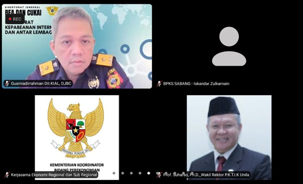 (Unila): Universitas Lampung (Unila) ikut serta pada agenda Konsultasi Nasional Penyusunan Implementation Blueprint (IB) IMT-GT 2022-2026 yang diselenggarakan Kementerian Koordinator Bidang Perekonomian via daring, Selasa, 6 Juli 2021.