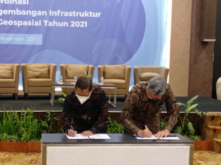 (Unila): Wakil Rektor Bidang PKTIK Universitas Lampung (Unila) Prof. Ir. Suharso, S.Si., Ph.D., ikut serta pada penandatanganan perjanjian kerja sama dengan Badan Informasi Geospasial (BIG) RI, di Eastparc Hotel Yogyakarta, Kamis, 18 November 2021.