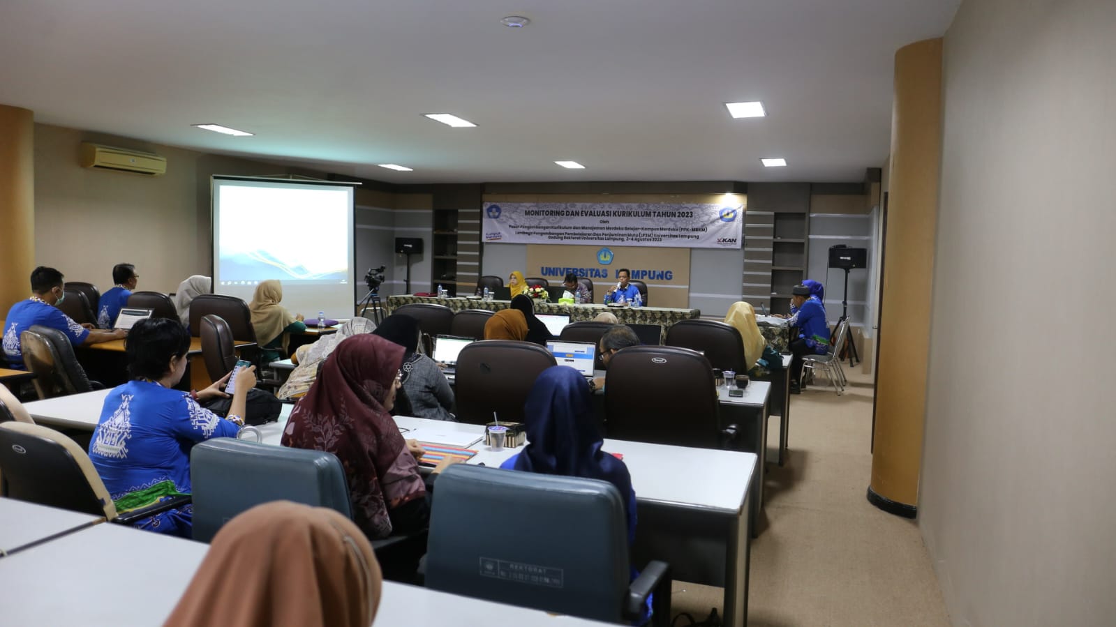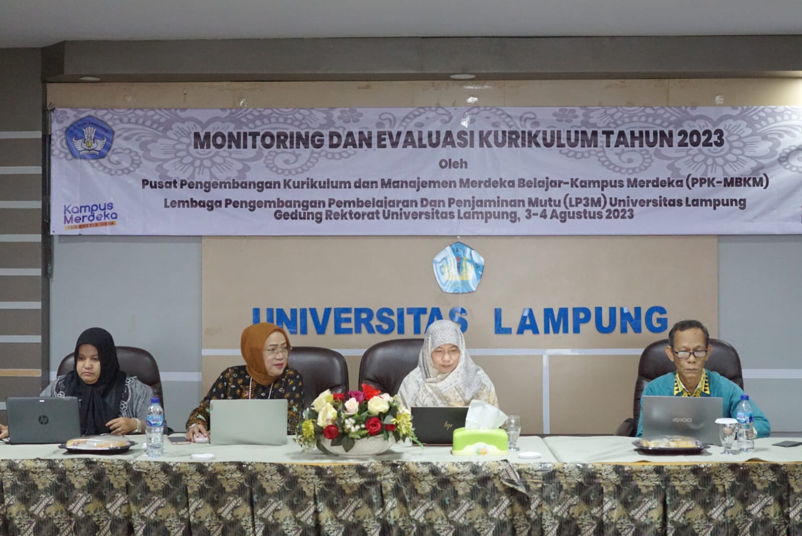 (Unila): Pusat Pengembangan Kurikulum dan Manajemen Belajar Kampus Merdeka (PPK-MBKM) dan Lembaga Pengembangan Pembelajaran dan Penjaminan Mutu (LP3M) Universitas Lampung (Unila) mengadakan Monitoring dan Evaluasi Kurikulum Tahun 2023. Kegiatan berlangsung di ruang sidang satu rektorat, Kamis, 3 Agustus 2023.