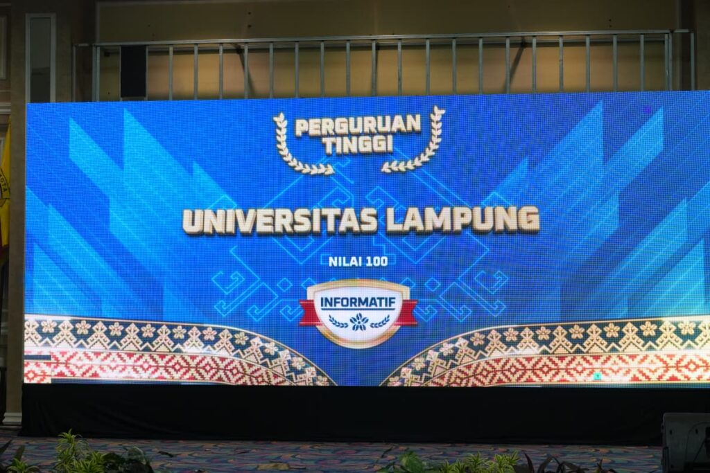 (Unila): Universitas Lampung (Unila) kembali mencatat prestasi gemilang dengan meraih predikat Badan Publik Perguruan Tinggi Informatif yang diselenggarakan Komisi Informasi (KI) Provinsi Lampung dalam ajang Anugerah Keterbukaan Informasi Publik Tingkat Provinsi Lampung tahun 2025. Kegiatan digealr di Balai Keratun Kantor Gubernur Provinsi Lampung, Senin, 8 Desember 2025.