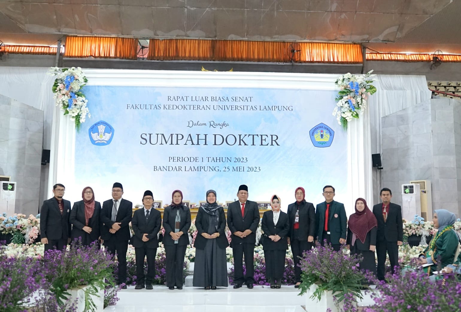 (Unila): 81 mahasiswa kedokteran Fakultas Kedokteran (FK) Universitas Lampung (Unila) melakukan Pengambilan Sumpah Program Profesi Dokter Periode I Tahun 2023 yang berlangsung di Gedung Serbaguna kampus setempat, Kamis, 25 Mei 2023. Hingga kini, FK Unila telah meluluskan 1.682 dokter yang tersebar di seluruh Indonesia.