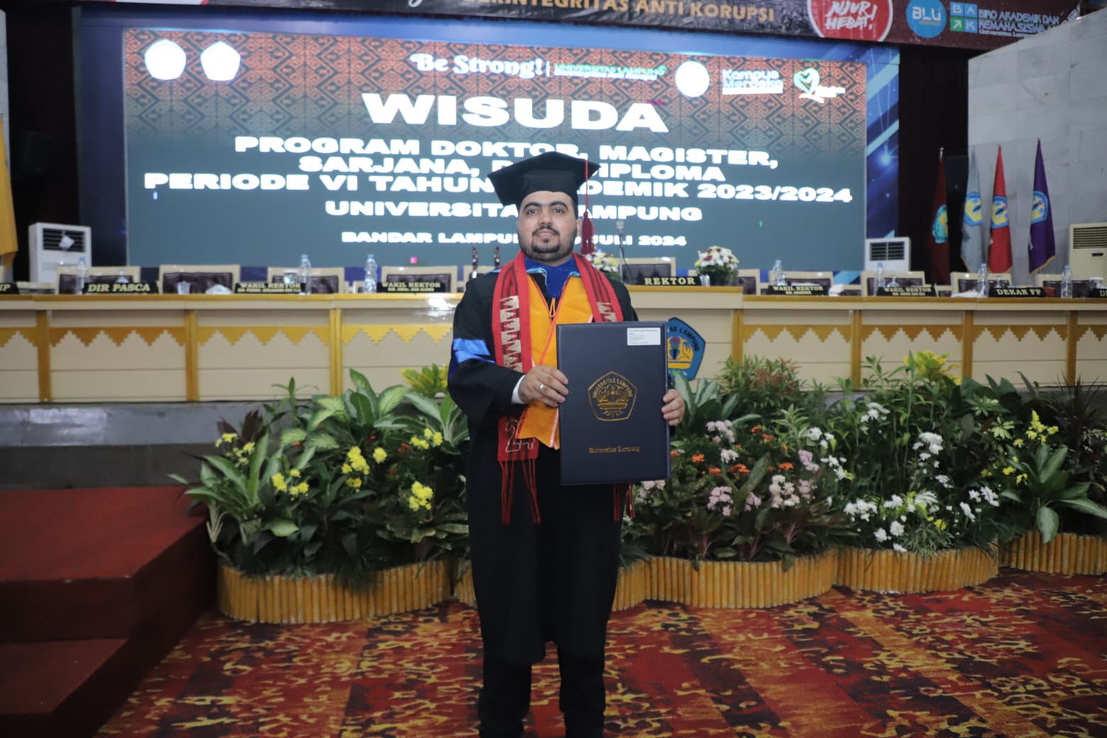 Ala sangat bersyukur dan berterima kasih kepada Universitas Lampung yang disebutnya dengan “ayah” kedua. “Dari semua fasilitas, bantuan, dan ilmu yang diberikan, saya ingin mengucapkan terima kasih kepada Unila. Semoga semua kebaikan yang diberikan bisa membantu kalian untuk bertemu dengan orang terkasih di surga nanti,” ujarnya. [Magang_Rafa Nithalaida]