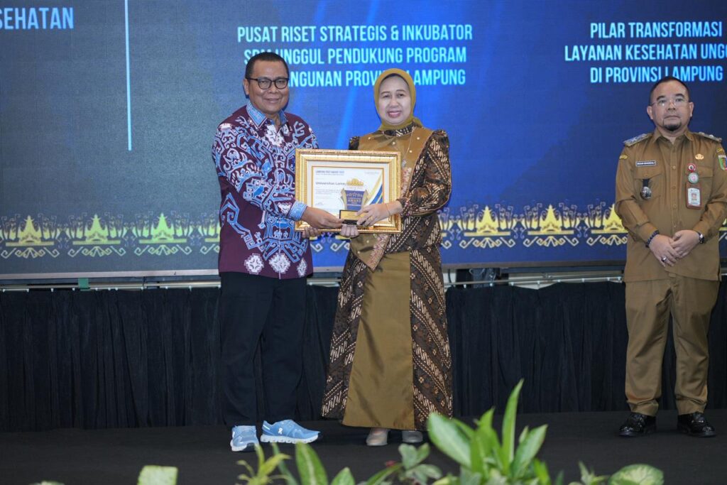 (Unila): Memenangkan penghargaan sebagai pusat riset strategis dan inkubator Sumber Daya Manusia (SDM) unggul pendukung program pembangunan Provinsi Lampung oleh Lampung Post Award 2026 dengan tema “Asta Cita Bersama Lampung Maju”, pada Selasa, 14 april 2026 di Hotel Emersia.