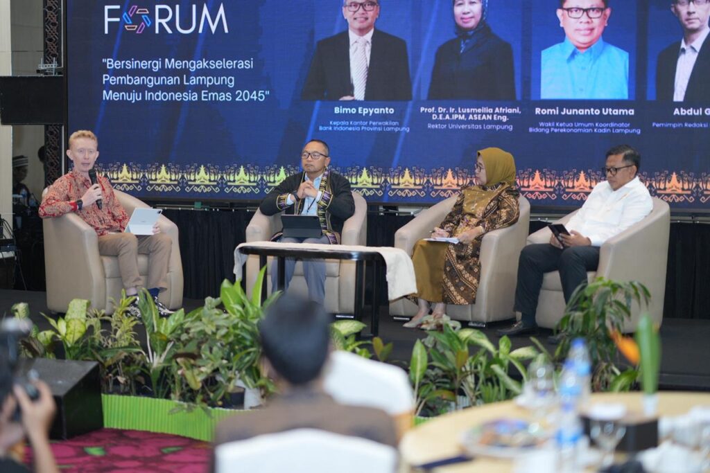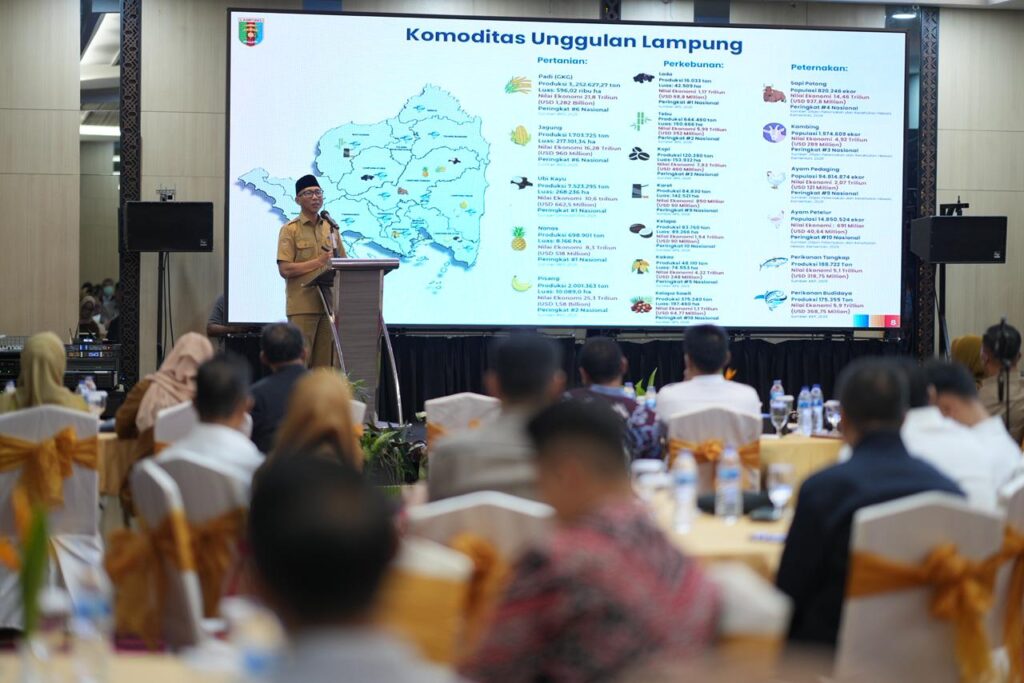 Pada eksekutif forum bertema “Bersinergi Mengakselerasi Pembangunan Lampung Menuju Indonesia Emas 2045”, Gubernur Gubernur Lampung menyampaikan Provinsi Lampung memiliki potensi besar di berbagai sektor, khususnya pertanian dan pariwisata yang berperan krusial dalam mendorong pembangunan daerah.
