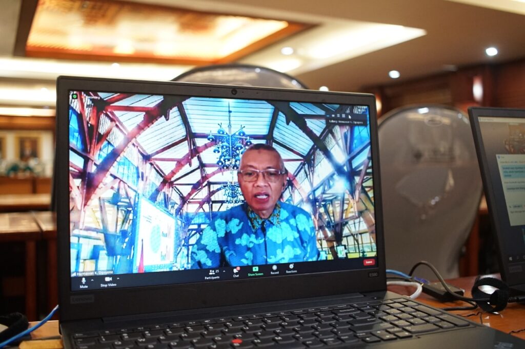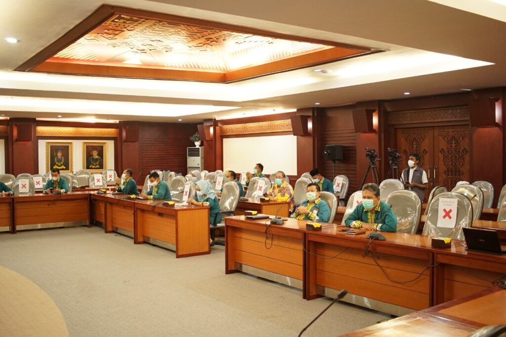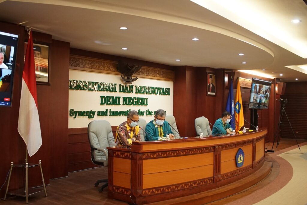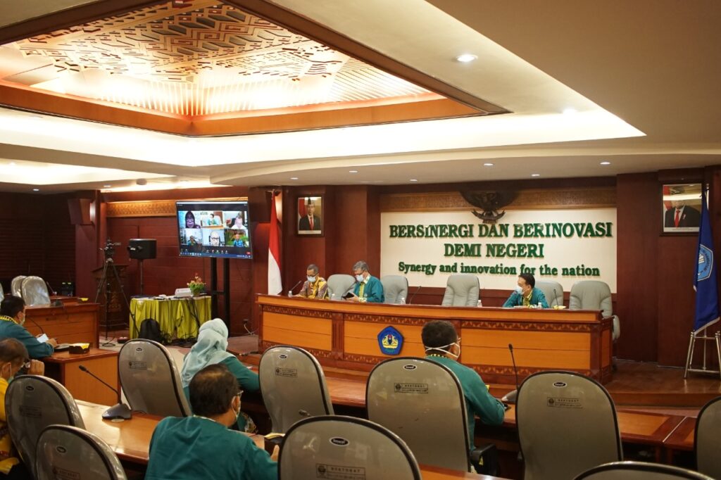 Kegiatan yang berlangsung offline dan virtual di ruang sidang utama lantai 2 Rektorat ini menghadirkan beberapa narasumber.