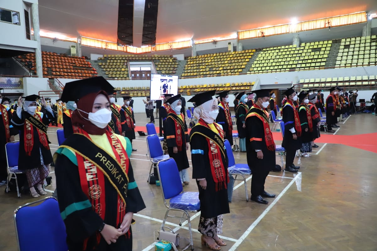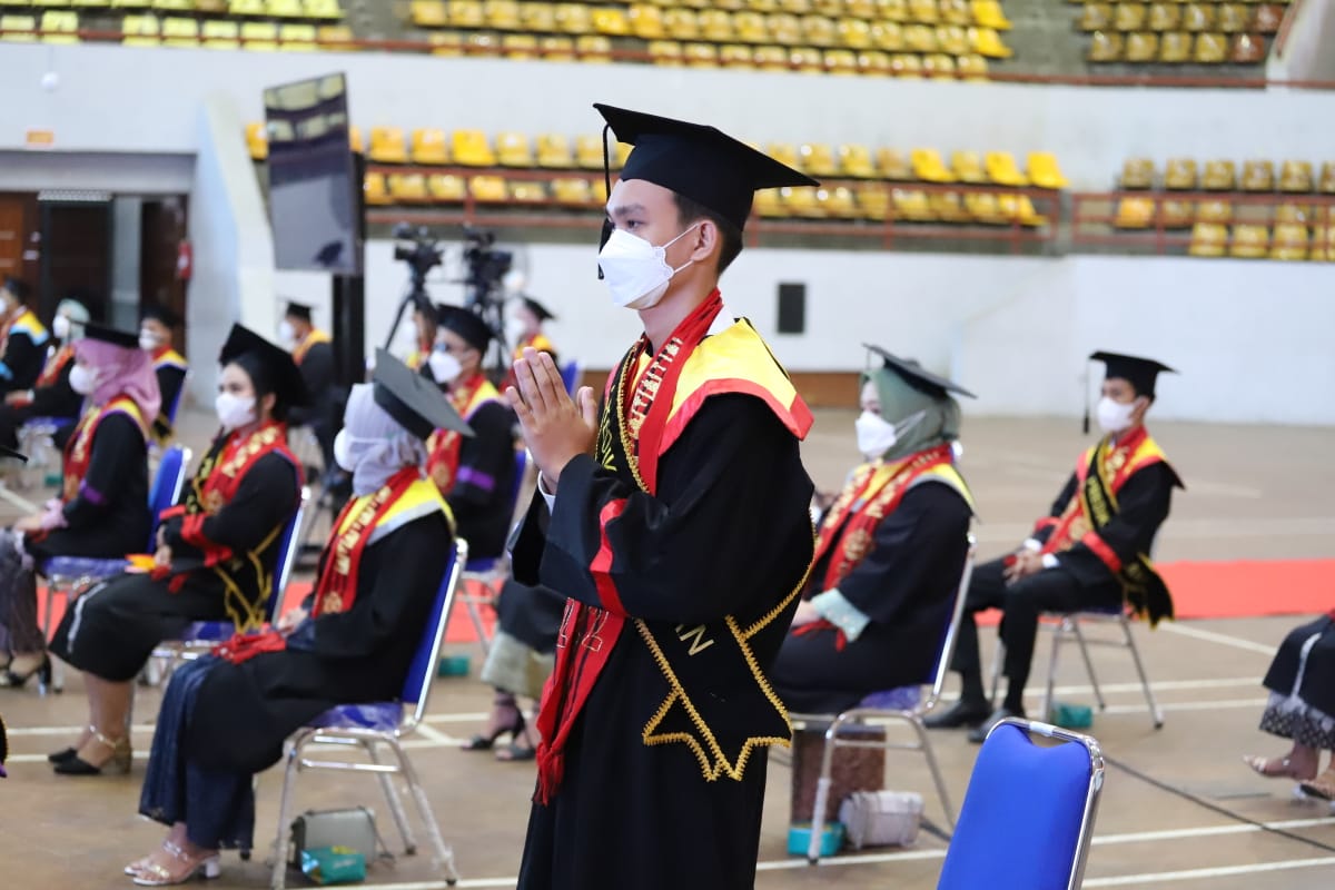 Wisuda diselenggarakan secara daring dan luring terbatas dengan menghadirkan perwakilan dari masing-masing fakultas. Selebihnya wisudawan mengikuti prosesi wisuda secara daring via Zoom.