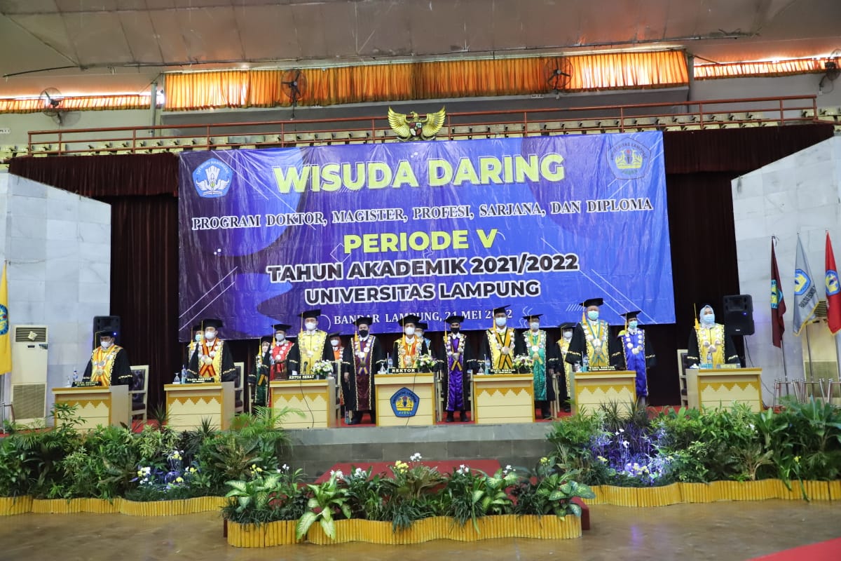 (Unila): Rektor Universitas Lampung (Unila) mewisuda 711 lulusan program doktor, magister, profesi, sarjana, dan diploma, pada upacara Wisuda Daring Periode V Tahun Akademik 2021/2022, Sabtu, 21 Mei 2022.