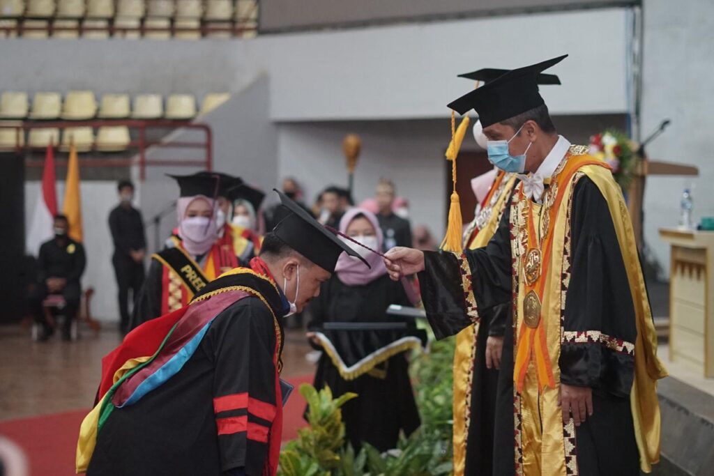 Wisuda diselenggarakan secara luring terbatas dengan menghadirkan perwakilan dari masing-masing fakultas, selebihnya diikuti para wisudawan secara daring.