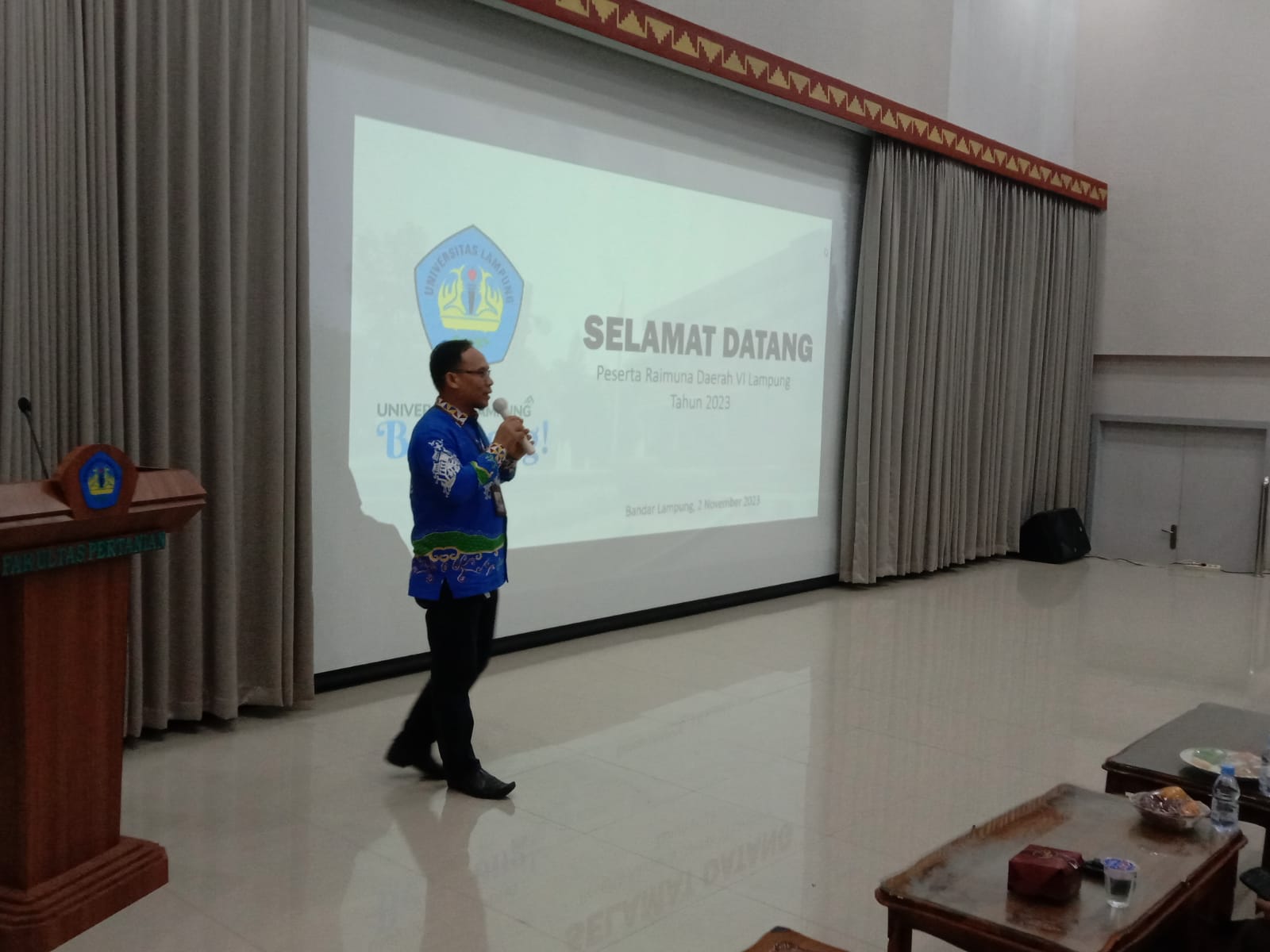 M. Safik Eka Saputra memberikan materi Selayang Pandang tentang Unila kepada peserta Raida. Materi tersebut mencakup pengenalan kampus hijau Unila, termasuk profil kampus, prestasi, dan beasiswa.