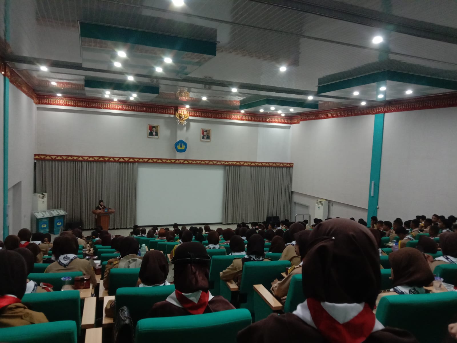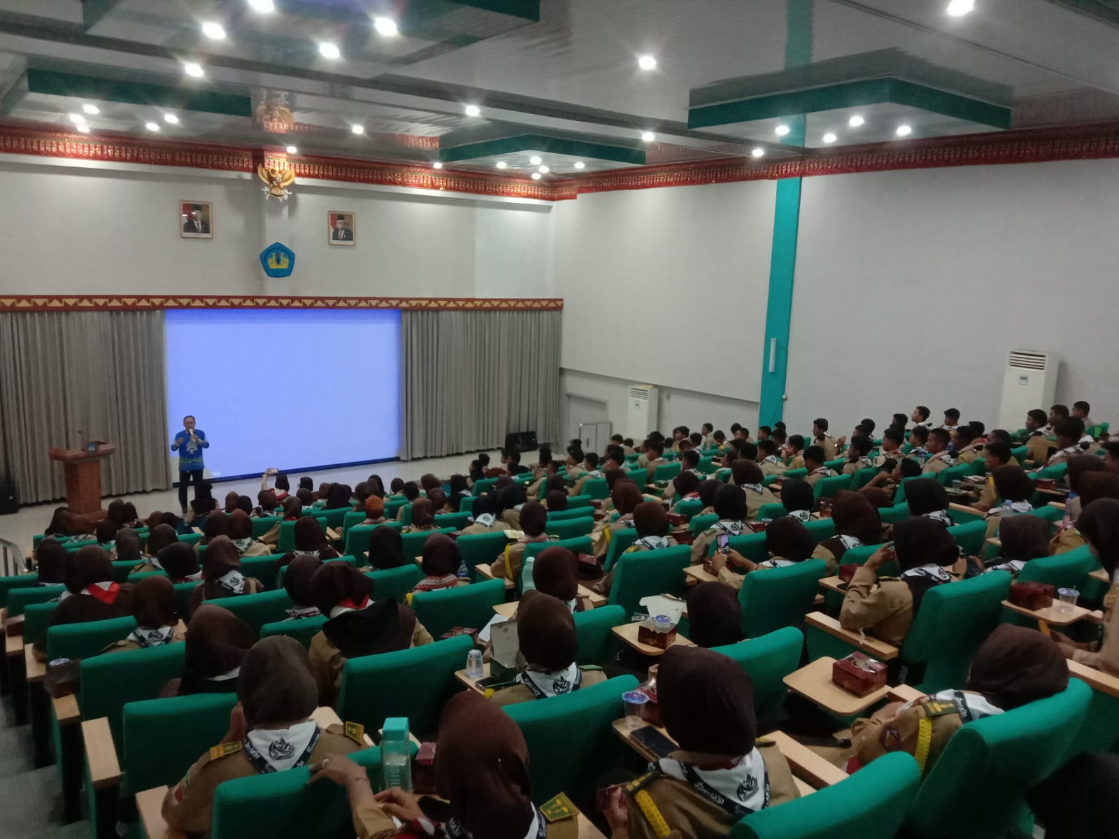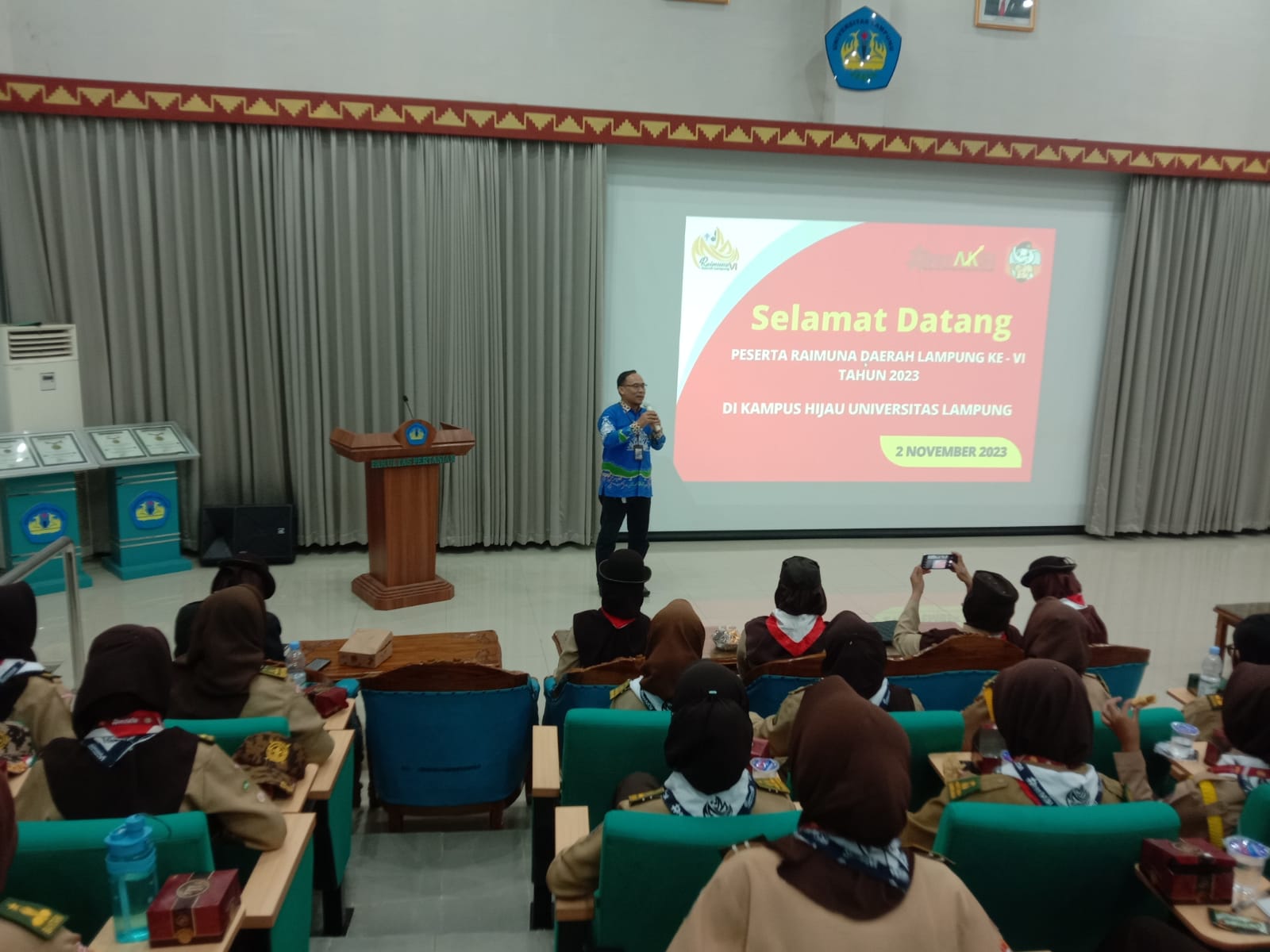 (Unila): Universitas Lampung (Unila) menerima kunjungan peserta Raimuna Daerah (Riada) Lampung VI tahun 2023 di Gedung Aula Dekanat Fakultas Pertanian (FP) pada Kamis, 2 November 2023.