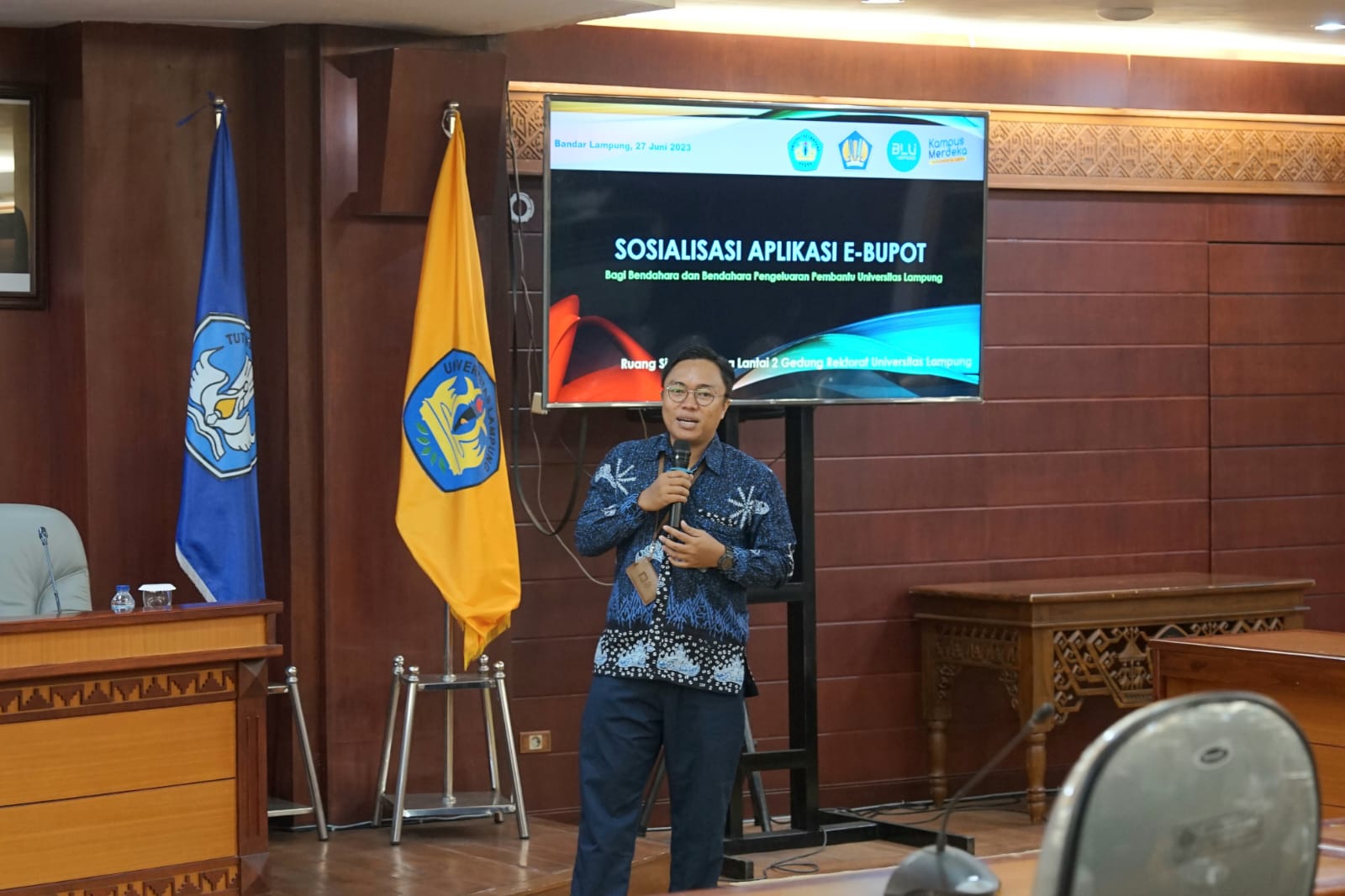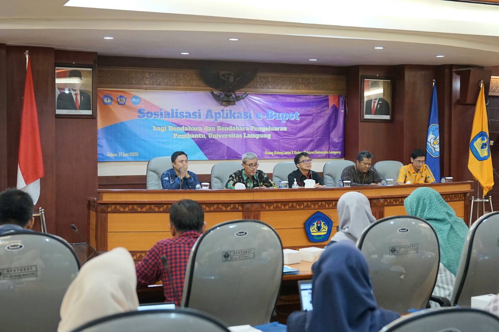 (Unila): Universitas Lampung (Unila) menyelenggarakan sosialisasi penggunaan aplikasi e-Bupot bagi para bendahara utama dan bendahara pembantu di tingkat fakultas dan universitas, Selasa, 27 Juni 2023.