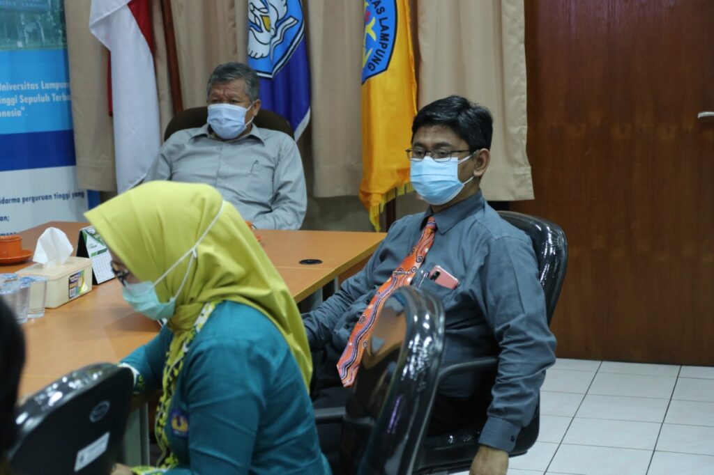 Turut hadir Wakil Rektor Bidang Akademik Prof. Dr. Heryandi, S.H., M.S., Wakil Rektor BUK Prof. Dr. dr. Asep Sukohar, S.Ked., M.Kes., Ketua LPPM Dr. Ir. Lusmeilia Afriani, D.E.A., Koordinator Bagian Perencanaan Masduki, S.Si., M.Ak., dan Subkoordinator Subbagian Perencanaan Susanto, S.Kom., di ruang kerja Warek PKTIK, Kamis (25/3/2021).