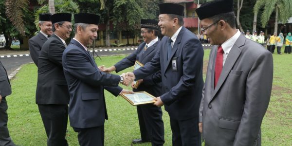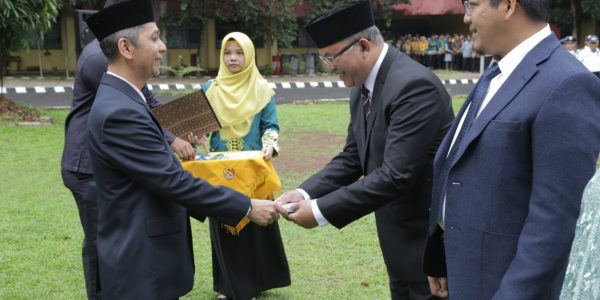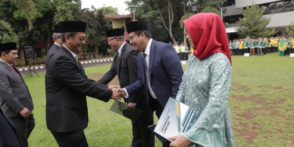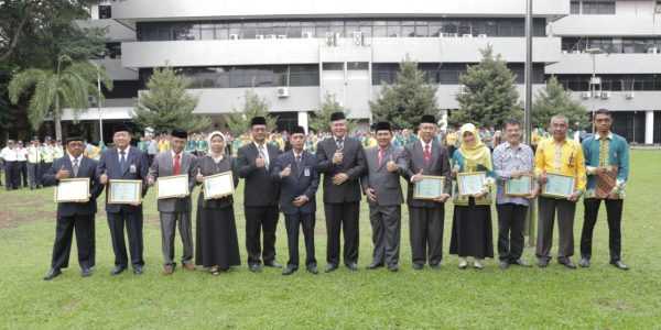 Penyerahan SK dilakukan pada upacara rutin bulanan Unila yang berlangsung di halaman belakang Rektorat, Jumat (17/1/2020) pagi.