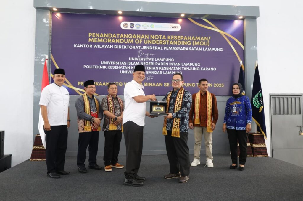 (Unila): Universitas Lampung (Unila) turut berperan aktif dalam penandatanganan Nota Kesepahaman (MoU) kerja sama dengan Kantor Wilayah Direktorat Jenderal Pemasyarakatan Lampung, yang dirangkai dengan pembukaan Musabaqah Tilawatil Quran (MTQ) Warga Binaan Pemasyarakatan se-Lampung Tahun 2025.