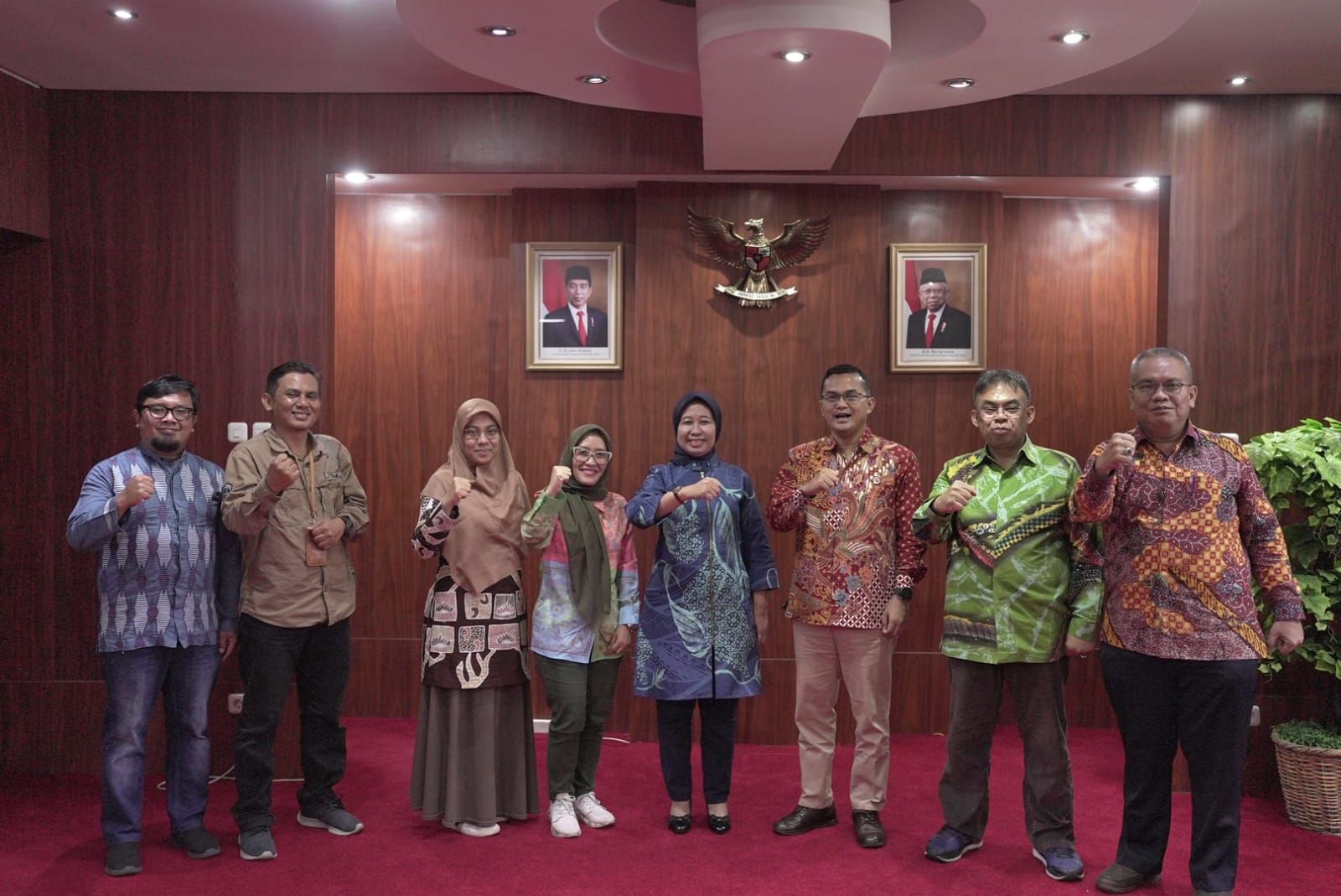 (Unila): Rektor Universitas Lampung (Unila) Prof. Dr. Ir. Lusmeilia Afriani, D.E.A., I.P.M., dan para jajaran wakil rektor menerima audiensi Badan Riset dan Inovasi Nasional (BRIN) yang diwakili bapak Eka Miftakhul Jannah beserta tim, di ruang kerja rektor, Jum’at, 17 Maret 2023.