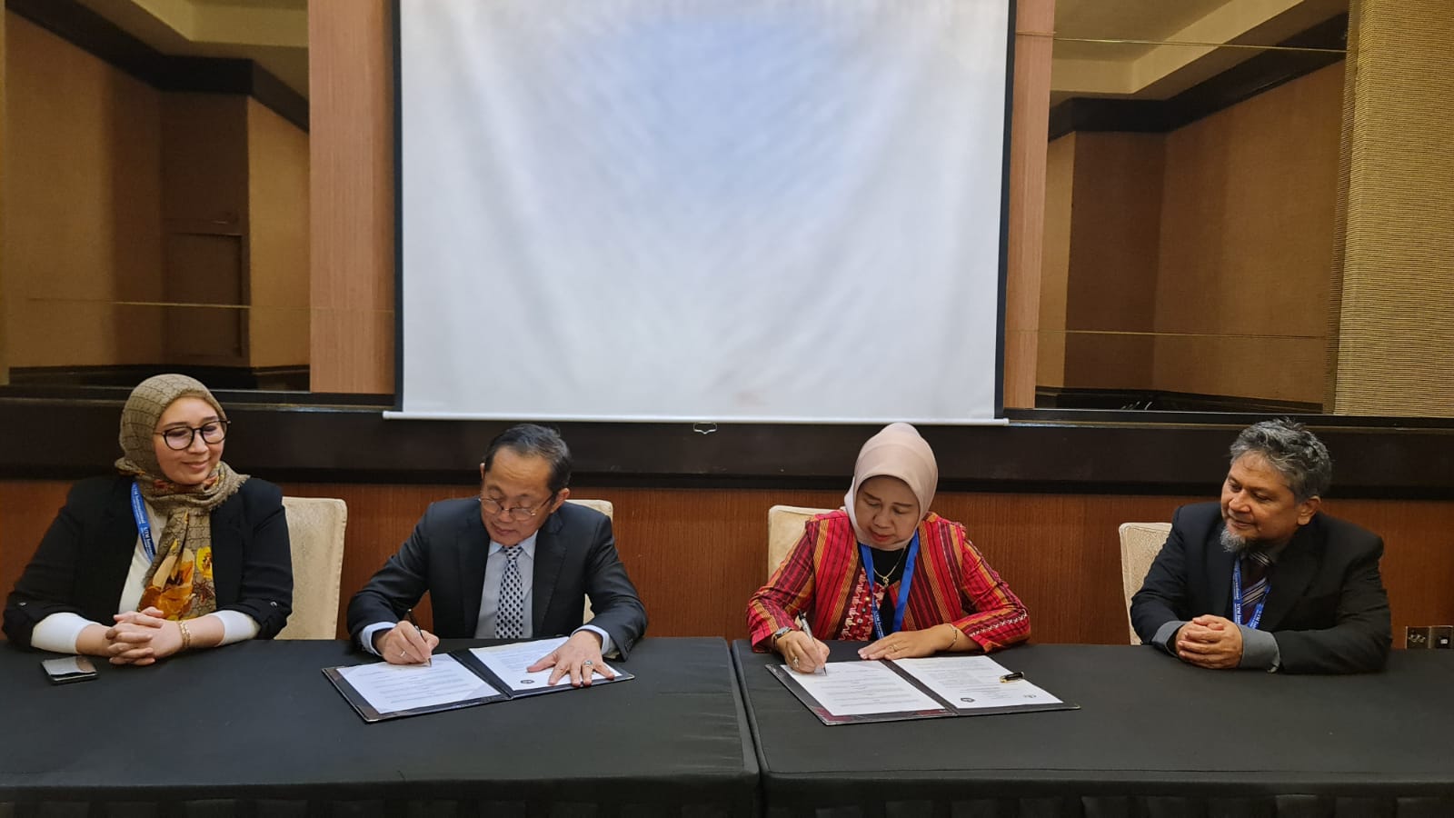 Penandatanganan MoU dilakukan di KSL Resort Meeting Room Johor Bahru Malaysia, Kamis 10 Agustus 2023, antara Rektor Unila Prof. Dr. Ir. Lusmeilia Afriani, DEA., IPM., ASEAN Eng, Rektor Universitas Trisakti Prof. Dr.Ir. Kadarsah Suryadi, DEA dan Rektor Sumbawa University of Technology Chairul Hudaya, Ph.D.