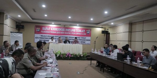 Universitas Lampung mendelegasikan Wakil Rektor Bidang Kemahasiswaan dan Alumni Prof. Dr. Yulianto, M.S., untuk hadir pada diskusi terbatas bersama 32 instansi seperti perguruan tinggi, dinas pendidikan, dan sekolah. Forum dibangun untuk membahas program Quick Wins Polda Lampung 2020 yang digelar di Meeting Room, Hotel Bukit Randu, Bandarlampung, Rabu (12/2/2020).