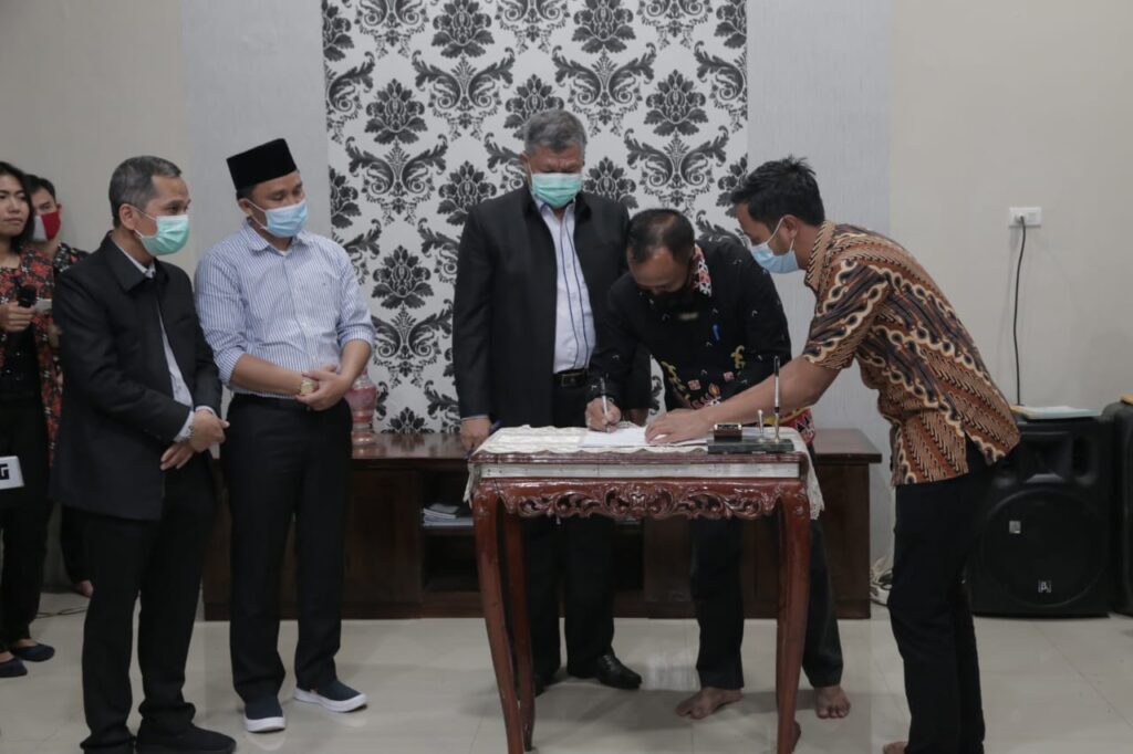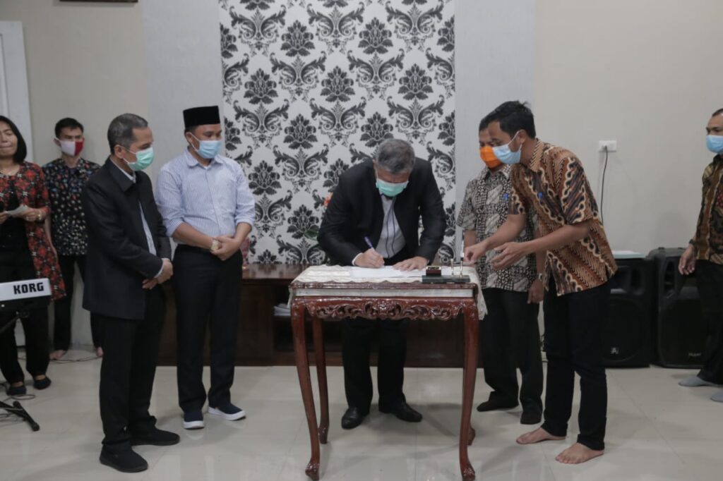 Penandatanganan dilakukan oleh Wakil Rektor Bidang Perencanaan, Kerja sama, dan TIK Prof. Suharso dan kepala dinas serta kepala badan terkait. Penandatanganan naskah PKS disaksikan langsung Rektor Unila Prof. Karomani dan Bupati Lambar Parosil Mabsus di Lamban Gedung Bupati Lambar, Jumat (2/10/2020) malam.