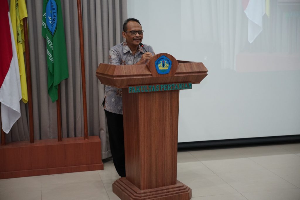 Wakil Rektor Bidang Akademik Unila, Prof. Dr. Eng. Suripto Dwi Yuwono, S.Si., M.T., membuka acara mewakili Rektor Unila. Hadir pula para wakil dekan Fakultas Pertanian dan Kepala Unit Penunjang Akademik (UPA) Layanan Uji Kompetensi.