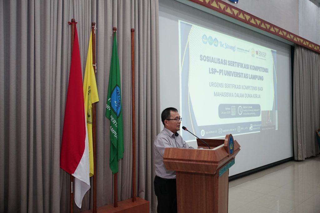 Materi utama disampaikan oleh Prof. Dr. Amrizal, S.T., M.T., Kepala UPA LSP‑P1 Unila. Fakultas Pertanian menyelenggarakan 2 skema