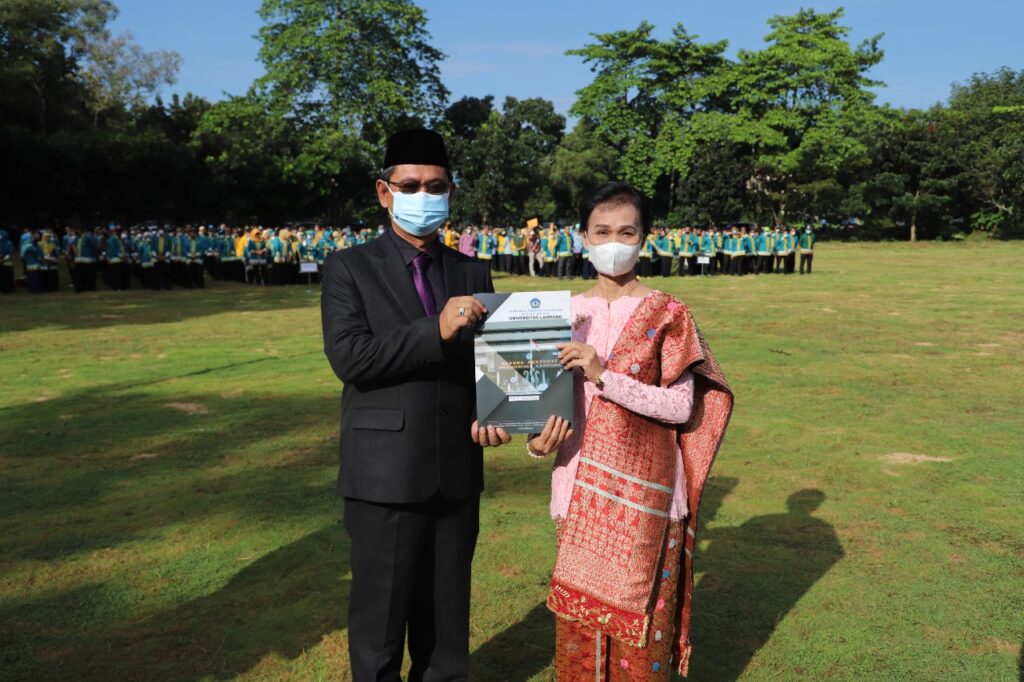 Upacara Harkitnas tahun 2022 ditutup dengan penyerahan Surat Keputusan (SK) Guru Besar kepada empat Dosen Unila.