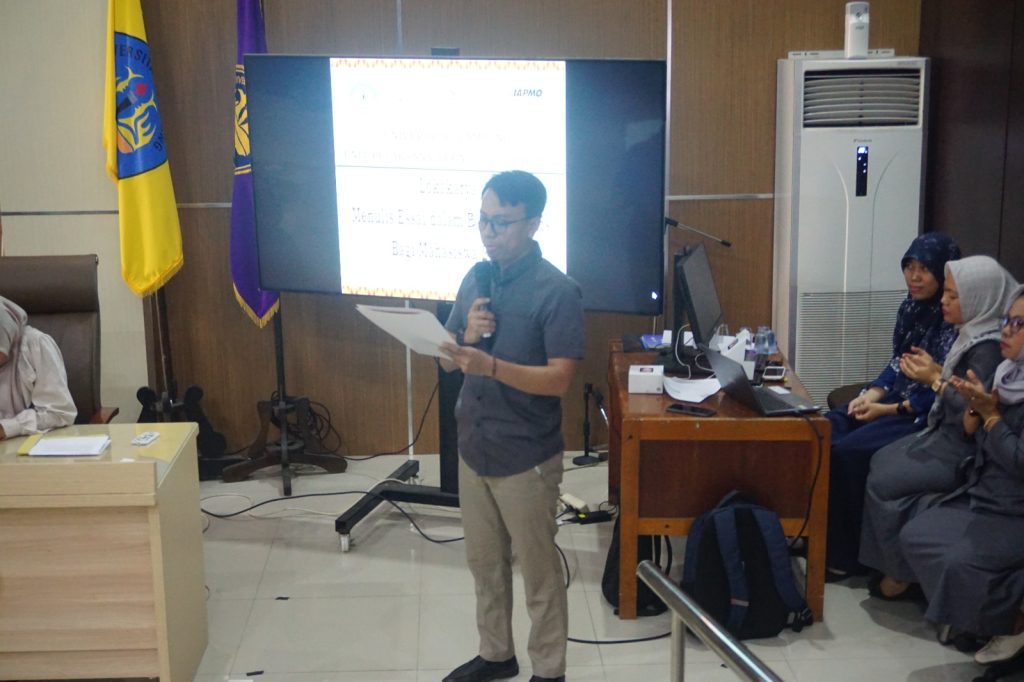 Kegiatan dilanjutkan dengan sesi pemaparan meteri pertama yakni terkait pengenalan academic writing, jenis academic writing, membuat skema essai, menyusun awalan essai, serta mencari dan menyusun ide utama yang disampaikan Delta Rahwanda, M.Pd., CIB.