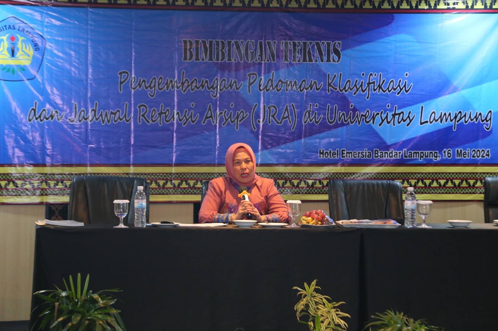 (Unila): UPT Kearsipan Universitas Lampung (Unila) menyelenggarakan Bimbingan Teknis (Bimtek) Pengembangan Pedoman Klasifikasi dan Jadwal Retensi Arsip (JRA) pada Kamis, 16 Mei 2024, di Hotel Emersia, Bandar Lampung.