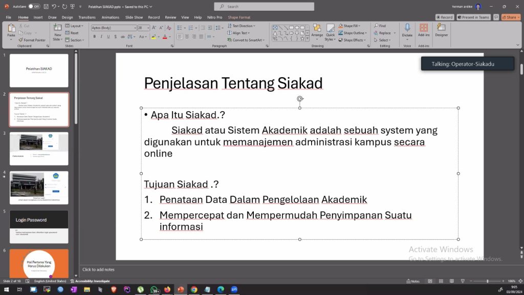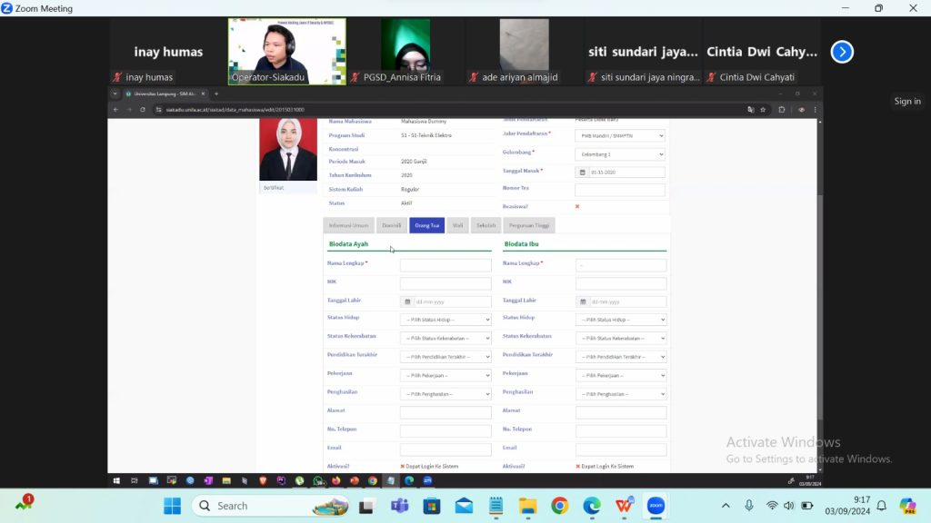 (Unila): Unit Pelaksana Teknis Teknologi Informasi dan Komunikasi (UPT TIK) Universitas Lampung (Unila) mengadakan pelatihan Sistem Informasi Akademik (Siakadu) bagi mahasiswa baru tahun akademik 2024/2025.