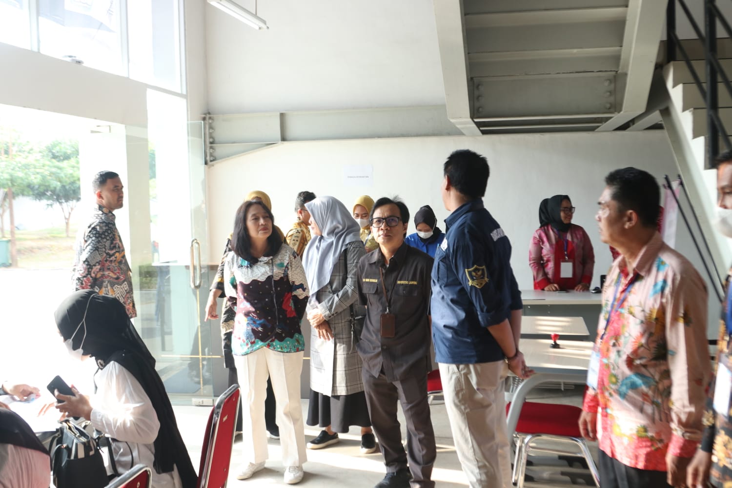 Kehadiran Prof. Rudy turut didampingi Wakil Rektor Bidang Umum dan Keuangan Itera Dr. Ir. Rahayu Sulistyorini, S.T., M.T., Kepala Biro Umum dan Keuangan Ida Ropaida, S.E., M.M., dan jajaran bagian kepegawaian Unila. [Daffa Alsa Pradika]
