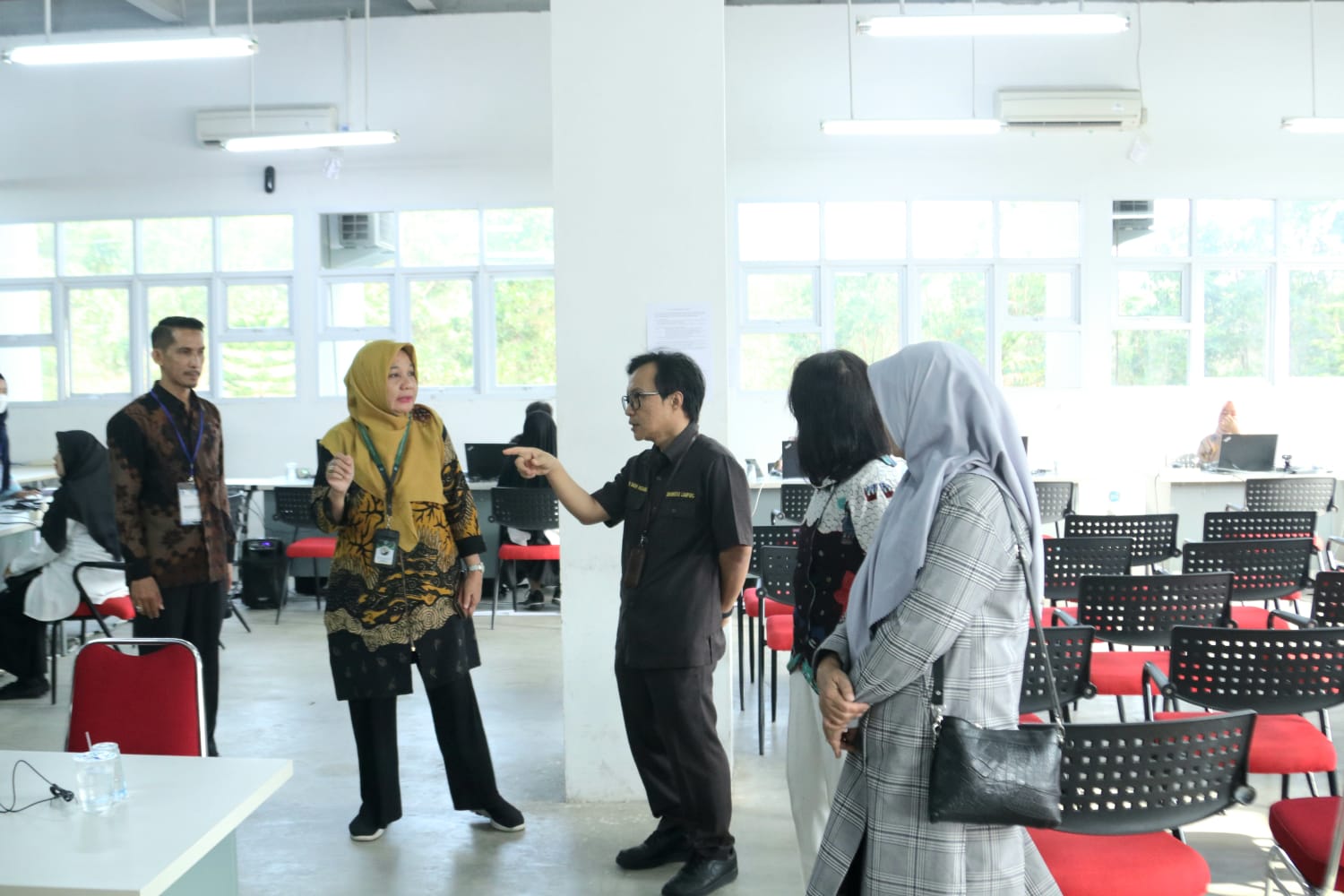 (Unila): Wakil Rektor Bidang Umum dan Keuangan Universitas Lampung (Unila) Prof. Rudy, S.H., LL.M., LL.D., mengunjungi Gedung Laboratorium Teknik 3 Institut Teknologi Sumatera (Itera) untuk memantau pelaksanaan tes Seleksi Kompetensi Dasar (SKD) Kemendikbudristek, Selasa, 14 November 2023.