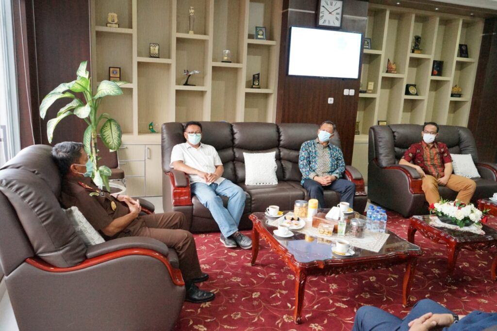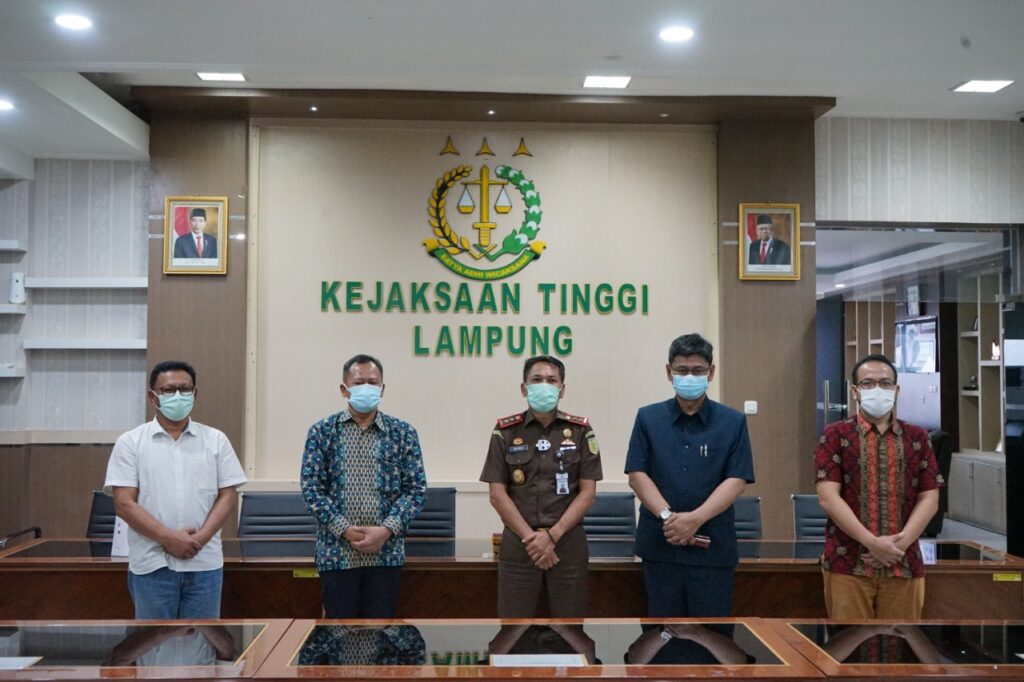 (Unila): Wakil Rektor Bidang Umum dan Keuangan (BUK) Universitas Lampung (Unila) Prof. Dr. dr. Asep Sukohar, S.Ked, M.Kes., didampingi tim dari fakultas hukum mengadakan silaturahmi dan audiensi dengan Kepala Kejaksaan Tinggi Lampung Dr. Heffinur, S.H., M.Hum., di ruang kerjanya, Kantor Kejaksaan Tinggi (Kajati) Lampung, Selasa, 9 Maret 2021.
