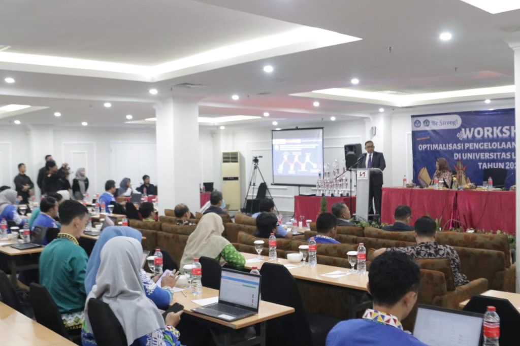 (Unila): Wakil Rektor Bidang Perencanaan, Kerja Sama, dan TIK Universitas Lampung (Unila) Dr. Ayi Ahadiat, S.E., M.B.A., secara resmi membuka workshop Optimalisasi Pengelolaan Website dan Blog, di Swissbell-Hotel, Bandar Lampung, Selasa, 1 Oktober 2024.