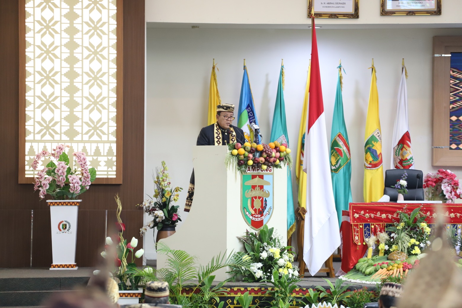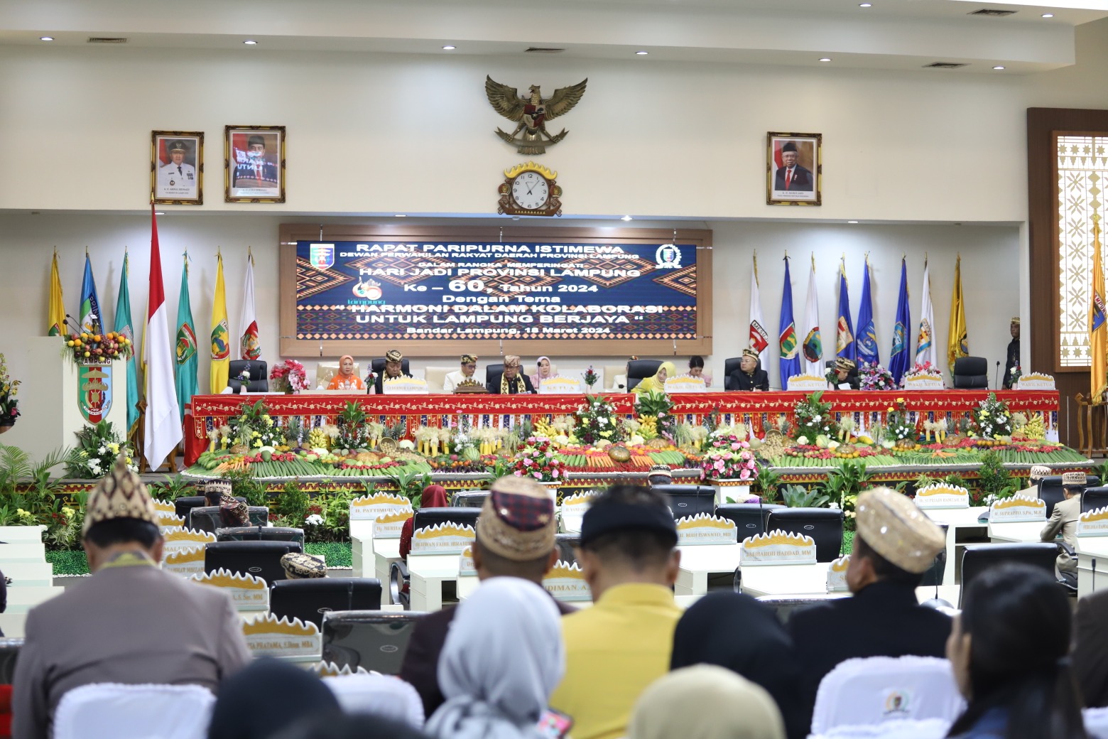 Kegiatan yang dilaksanakan di Ruang Sidang Paripurna DPRD Provinsi Lampung ini dihadiri Gubernur Lampung dan jajaran Forkompimda provinsi, serta segenap Bupati, PJ Bupati, Wakil Wali Kota Bandar Lampung, dan pimpinan institusi vertikal, organisasi kemasyarakatan, hingga mahasiswa.