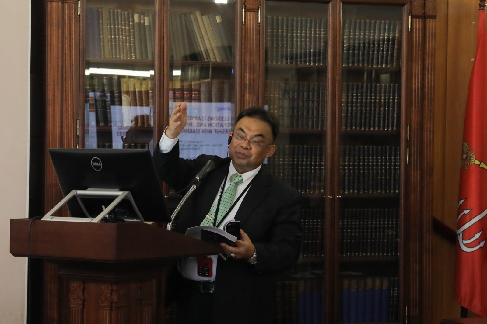 Dr. Ayi mempresentasikan tentang pembelajaran untuk membangun kerja sama dan meningkatkan kemitraan timbal balik dengan pemangku kepentingan maupun universitas melalui materinya berjudul Internalization of Higher Education and Strengthening the Cooperation among the Universities: Lesson from Universitas Lampung, Indonesia.