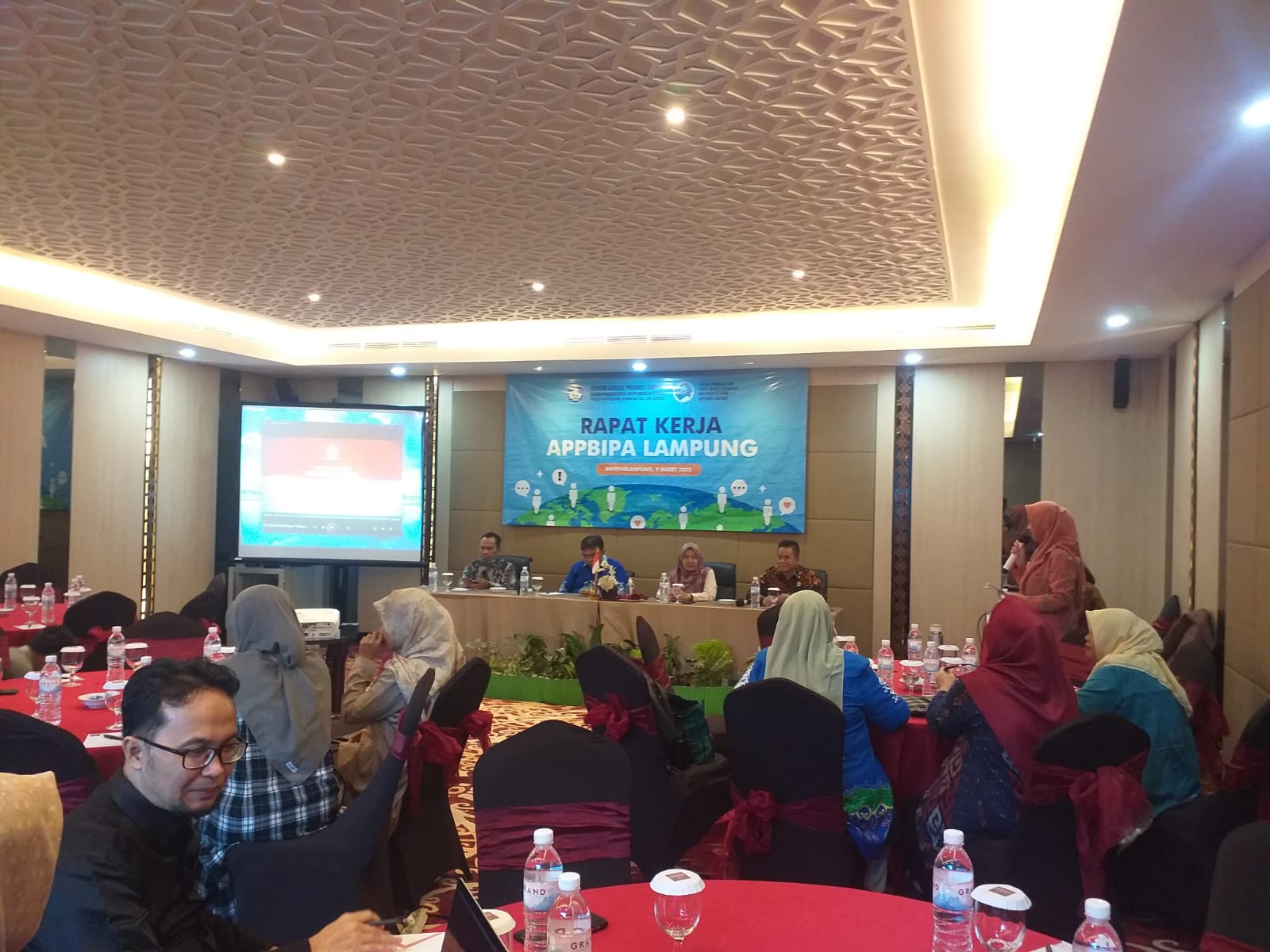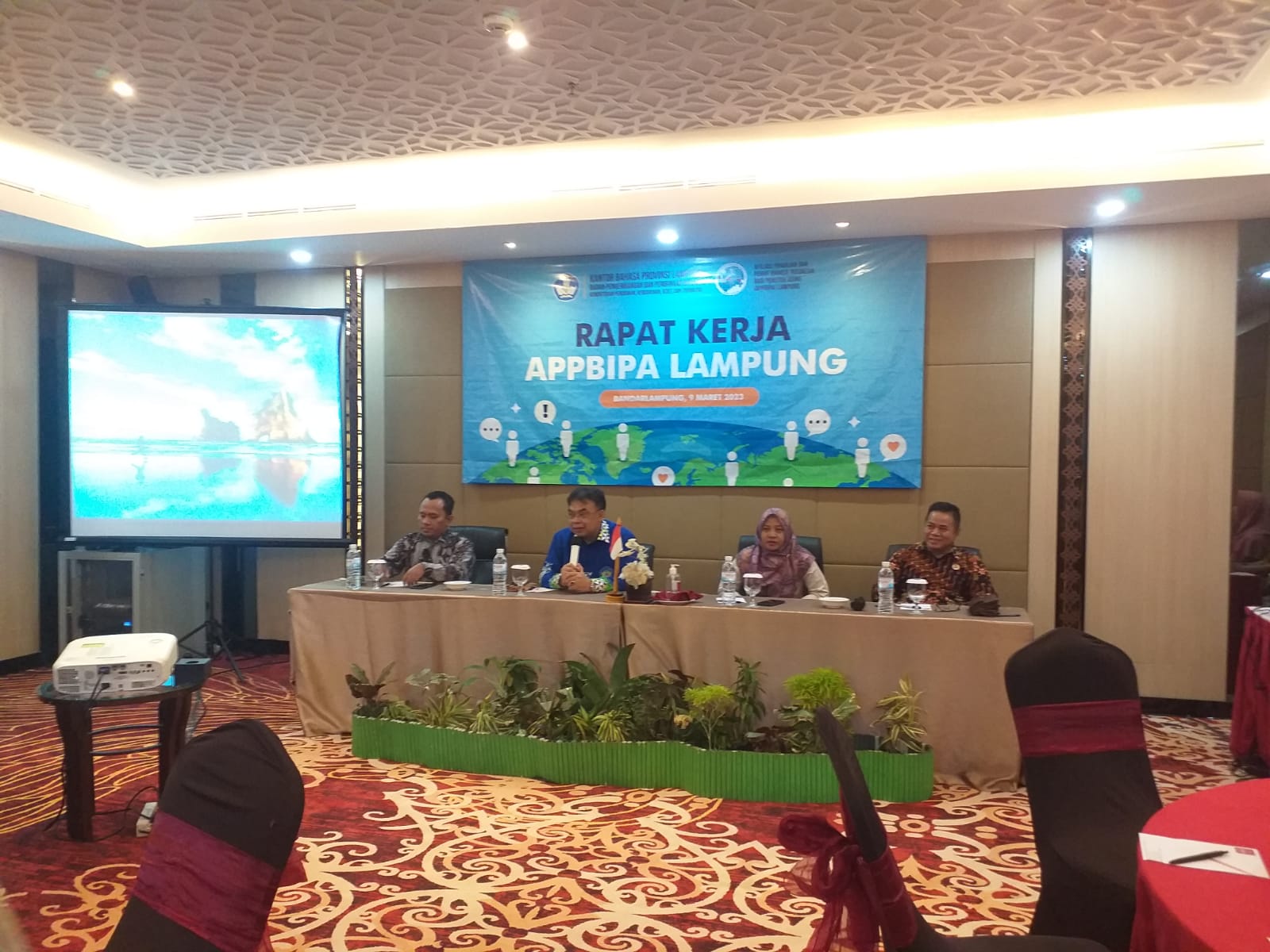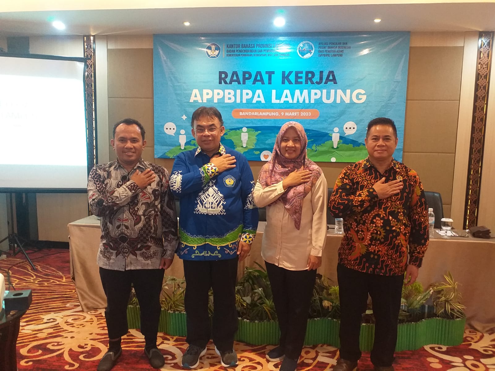 (Unila): Wakil Rektor Bidang Perencanaan, Kerjasama dan TIK Unila Dr. Ayi Ahadiat, S.E., M.B.A. membuka secara resmi Rapat Kerja Afiliasi Pengajar dan Pegiat Bahasa Indonesia bagi Penutur Asing (APPBIPA) Provinsi Lampung di Hotel Emersia Bandar Lampung, Kamis 9 Maret 2023.