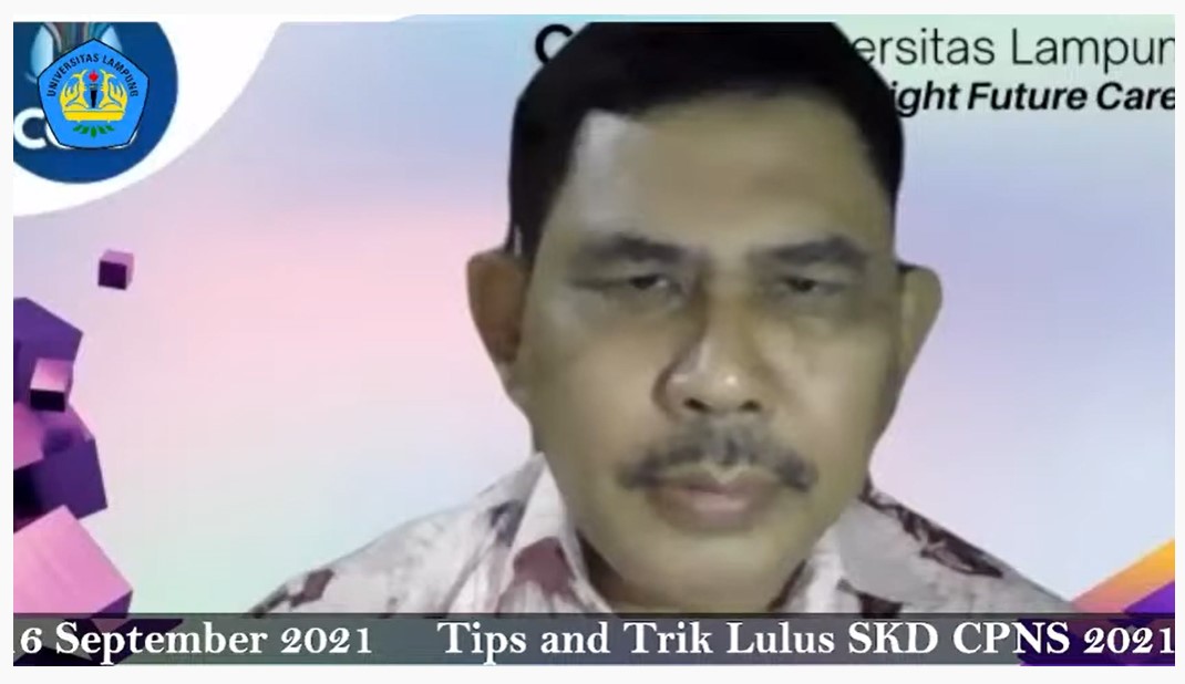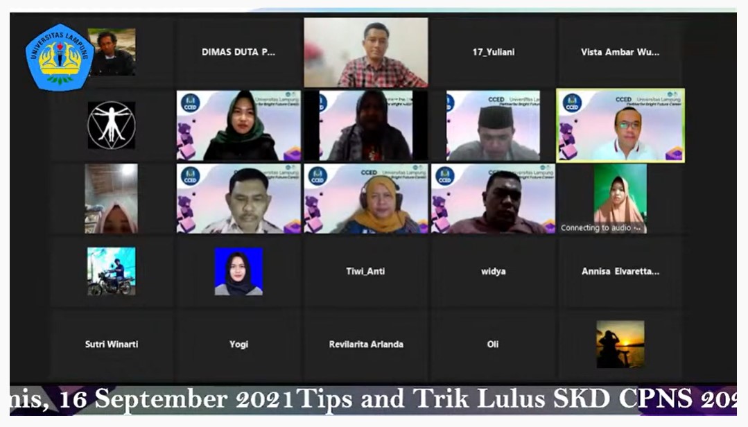 Kepala CCED Unila Diky Hidayat, S.Si., M.Sc., melaporkan, kegiatan ini merupakan rangkaian kegiatan pembinaan karir bagi mahasiswa dan alumni Unila yang dilakukan secara offline dan online.