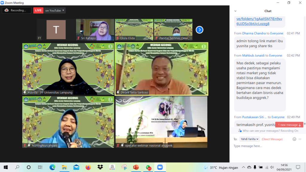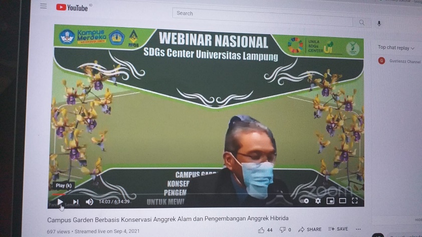 (Unila): Webinar Nasional dengan Tema: Campus Garden Berbasis Konservasi Anggrek Alam dan Pengembangan Anggrek Hibrida untuk Mewujudkan Kampus Berkelanjutan telah sukses dilaksanakan, Sabtu, 4 September 2021.