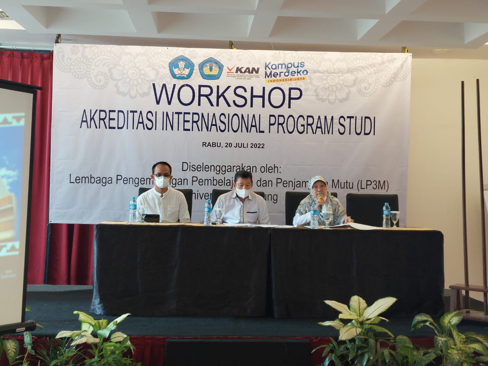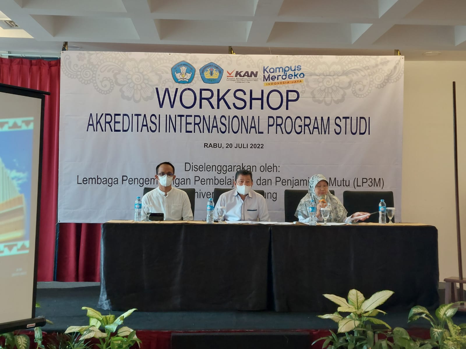 (Unila): Pusat Akreditasi Nasional dan Internasional Lembaga Pengembangan Pembelajaran dan Penjaminan Mutu (LP3M) Universitas Lampung (Unila) menggelar Workshop Persiapan Pendaftaran Akreditasi Internasional Program Studi Tahun 2022, di Hotel Horison, Bandarlampung, Rabu, 20 Juli 2022.